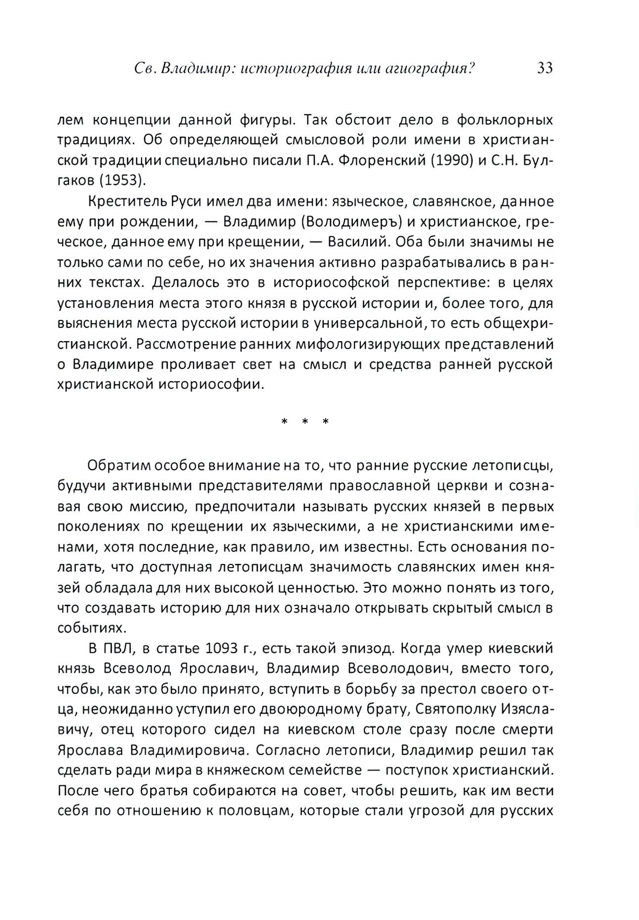 В этот том избранных работ С. Я. Сендеровича включены работы о древнерусской письменности. Большая часть из них посвящена расследованию историософского плана наиболее ранних русских текстов, "Слова о Законе и Благодати" и "Повести временных лет", выявлен их экзегетический характер, ведущий к прояснению глубинного смысла. В древнейшем поэтическом памятнике, "Слове о полку Игореве" реконструируется его связь с восточно- и южно-славянским фольклором, что позволяет обновленное чтение текста. Включено также расследование своеобразной истории русского имени Владимир.