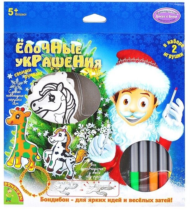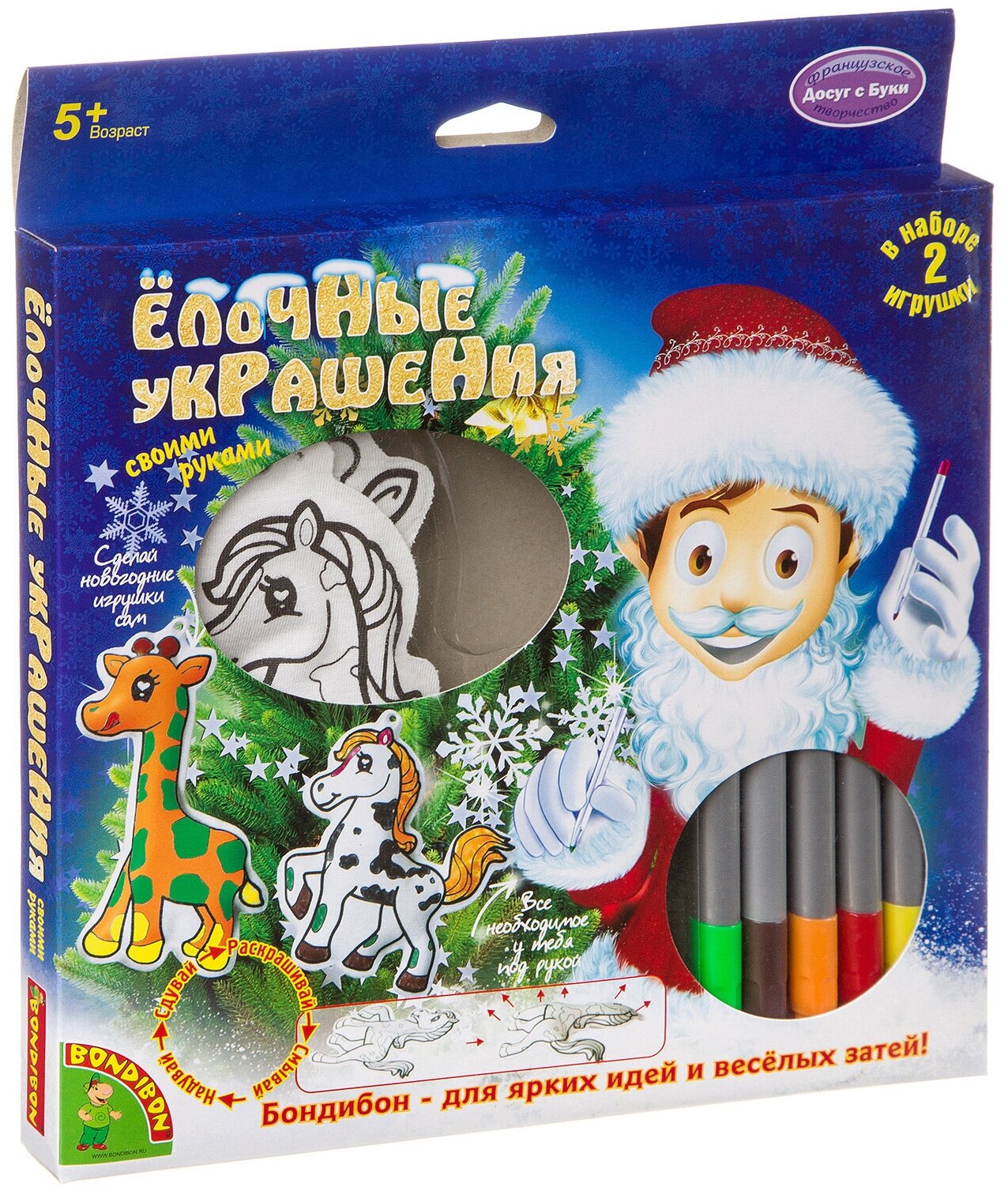 Набор для творчества Bondibon Французское творчество. Досуг с Буки Елочные украшения. Жираф и Лошадка Набор для творчества Ёлочные украшения Жираф, лошадка