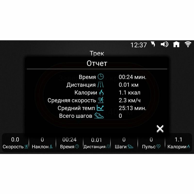 - Консоль управления: современная, многофункциональная русифицированная панель, цветной HD дисплей 10.1”, операционная система ANDROID, встроенная система мультимедиа, Bluetooth, Wi-Fi. Программное обеспечение содержит более 60 встроенных тренировок, в том числе варианты виртуального ландшафта: луг, набережная, каньон – визуализация тренировок. Встроенный Bluetooth модуль отвечает за подключение персональных гаджетов к консоли управления тренажера для использования спортивных APP приложений и приложения Kinomap, совместим с программным обеспечением iOS/ANDROID. Мультимедиа позволяет воспроизводить видео и аудио файлы непосредственно на консоли тренажера, в высоком качестве, как с USB накопителей, так и из сети Интернет. Также есть USB вход для подзарядки гаджетов во время занятий.
