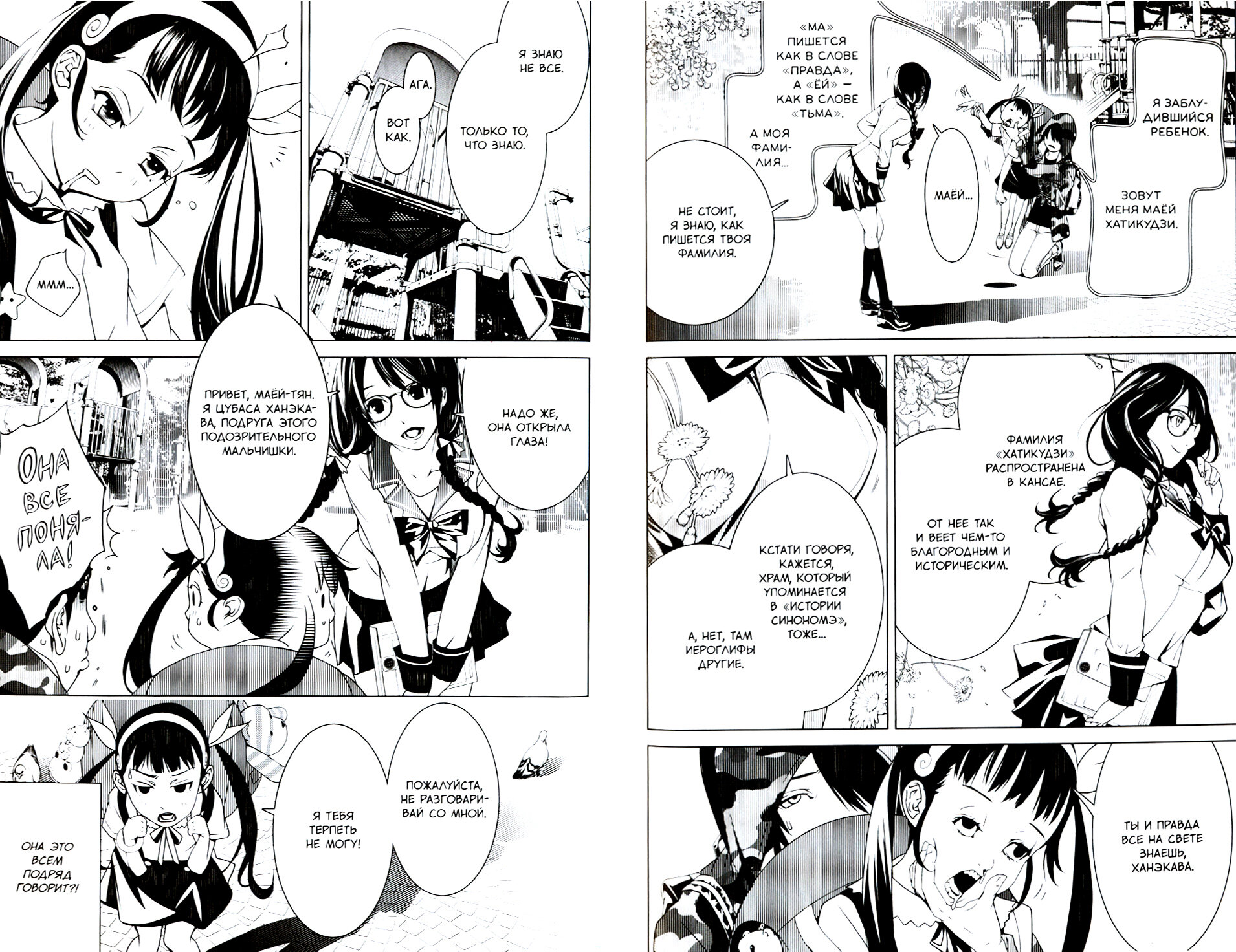 Хитаги Сэндзёгахара, чей вес забрал краб, решает сама нести свой груз, каким бы тяжким он ни был - любовь к матери и связанные с нею же болезненные воспоминания. Но кроме Сэндзёгахары Арараги встречает и еще одну странную девочку: это Маёй Хатикудзи, младшеклассница с огромным рюкзаком, которая по непонятной причине никак не может добраться домой. Возможно, желание помочь ей станет последним шагом, что навсегда отделит его от мира обычных людей...