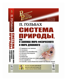 Вниманию читателей предлагается «Система природы» — выдающееся произведение великого материалиста и атеиста Поля Гольбаха. «Система природы» принадлежит к числу классических произведений воинствующего материализма XVIII века. В книге дается всесторонняя критика религии, обосновывается материалистическое, атеистическое мировоззрение. Автор подробно разбирает и опровергает доказательства бытия бога, вскрывает реакционную роль религии в жизни общества, рассматривает все поступки человека как причинно обусловленные и необходимые. Книга, ставшая основным и наиболее известным сочинением П. Гольбаха, вышла в свет в 1770 году и представляла собой наиболее всестороннее обоснование материализма и атеизма той эпохи. Современники называли ее «Библией материализма». «Система природы» была осуждена парижским парламентом и приговорена к сожжению вместе с другими атеистическими произведениями П. Гольбаха, а Римско-католическая церковь включила их в «Индекс запрещенных книг». Но сам автор не подвергся преследованиям, поскольку авторство книг не было установлено; его сочинения издавались за пределами Франции под вымышленными именами и с указанием ложного места издания. Тщательно сохраняя анонимность, П. Гольбах сумел избежать преследований. Книга печатается по изданию 1940 года, но в нее также включены статья о ней выдающегося советского философа А.М. Деборина и библиография работ П. Гольбаха из издания 1924 года. Книга рекомендуется философам, историкам, обществоведам, культурологам, а также широкому кругу заинтересованных читателей.