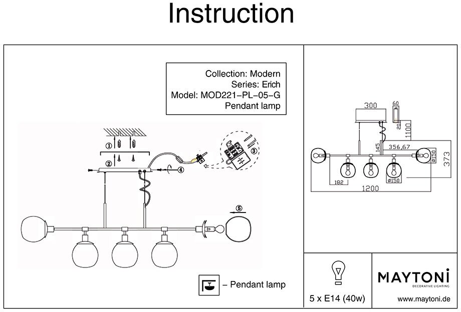 Подвесная люстра Maytoni Erich MOD221-PL-05-G