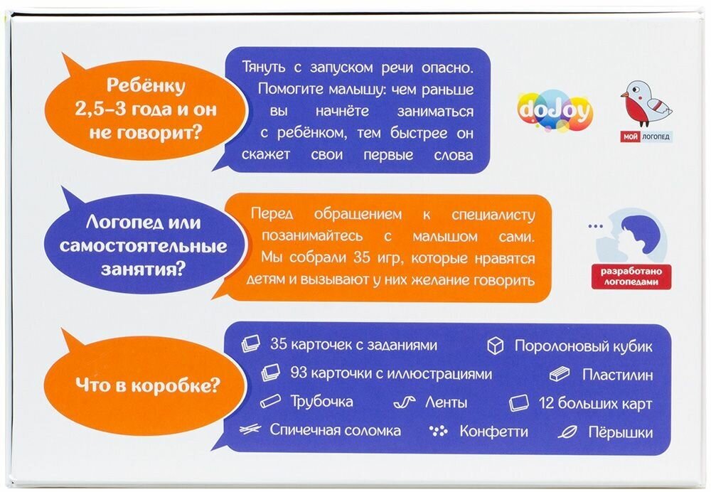 Ребенку 2,5–3 года и он еще не говорит? Значит пора действовать. Тянуть с запуском речи опасно. Помогите малышу: чем раньше вы начнете заниматься с ребенком, тем быстрее он скажет свои первые слова и начнет складывать их в предложения.Логопед или самостоятельные занятия?Перед обращением к специалисту стоит позаниматься с малышом самостоятельно. В наборе собрано 35 игр, которые нравятся детям и вызывают у них желание говорить. Логопеды считают эти задания наиболее эффективными.Превратите любимого молчуна в болтунишку!