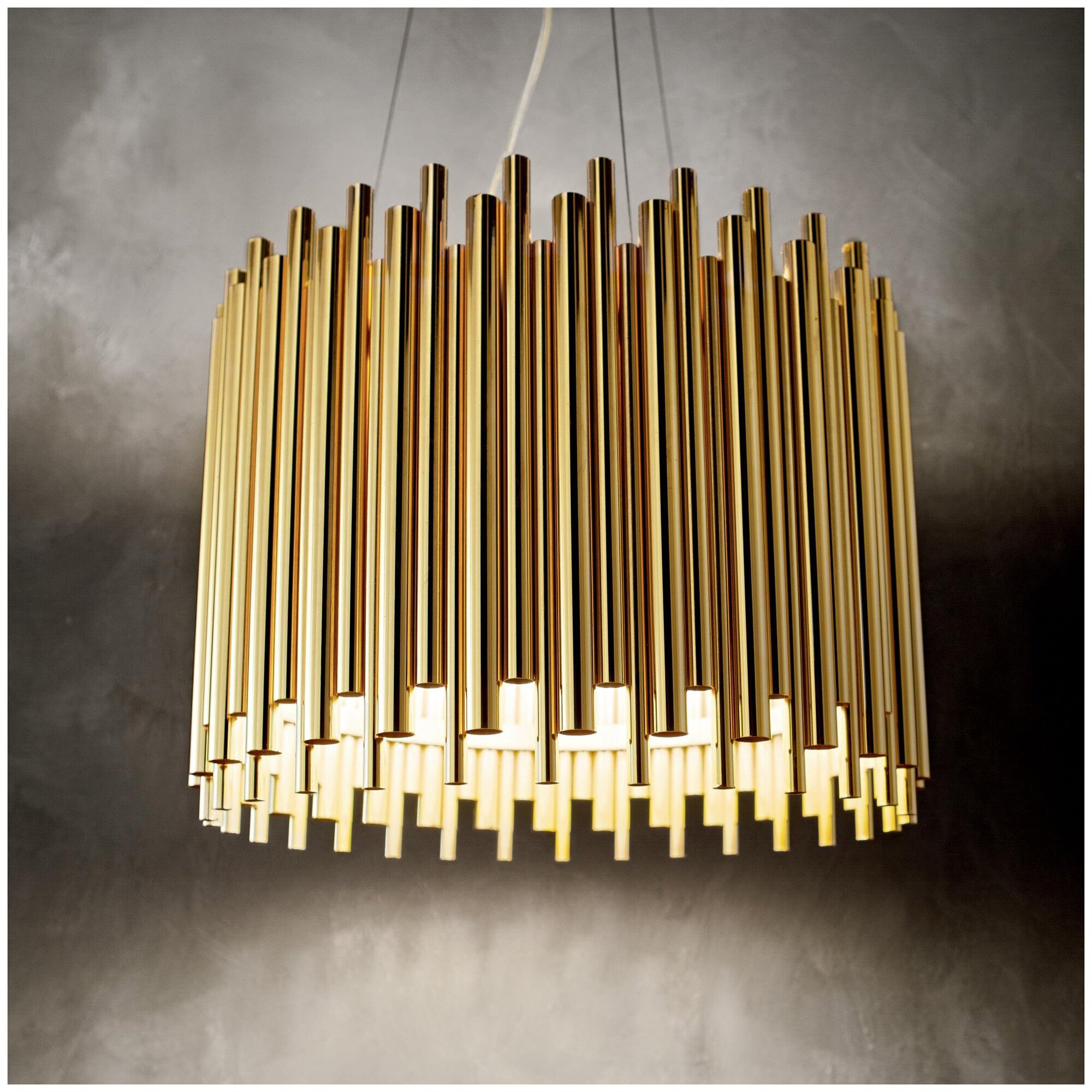 Светильник подвесной ideal lux Pan SP5 макс.5x60Вт IP20 Е27 230В Золото Металл Без ламп 208817.Стильный, эффектный и функциональный светильник. Он идеално впишется в любой интерьер и будет яркой, манящей точкой в доме.- Арматура из метала в цвете золото.- Рассеиватели с декоративными трубами разных размеров из плакированного металла, что придает светильнику изящество и благородство.- Стальные тросики регулируются по длине.- Размеры светильника: диаметр светильника 470 мм, высота мин.600 / макс.1510 мм, высота рассеивателя 350 мм, диаметр потолочной базы 145 мм.- Класс электробезопасности: I.- Степень защиты IP: 20. Светильник предназначен для использования в помещениях сухого типа, таких как гостиные, столовые, офисные помещения и т. д.- Европейский сертификат качества: CE. Он подтверждает соответствие продукта европейским требованиям безопасности, здоровью и защите окружающей среды.- Рабочая температура от 0° до +40°. Этот диапазон соответствует типичным условиям внутренних помещений. Светильник может использоваться в различных коммерческих и жилых помещениях, где обычно поддерживается комфортная температура.- Диммирование: Нет. Светильник не поддерживает функцию диммирования, нельзя регулировать яркость света, используя диммер или регулятор интенсивности света. Он предназначен для работы в режиме простого включения и выключения освещения.- Ламп в комплекте нет.- Рекомендуемая лампа артикул 119571 (goccia 8Вт 910Лм 3000К CRI80 e27 Прозрачный Не диммируемая). Рекомендуется использовать именно эту лампу, так как она соответствует техническим требованиям и обеспечивает хорошую яркость и качество света.- Гарантия: 5 лет. Производитель гарантирует качество и исправность светильника в течение указанного периода. Если в течение 5 лет после покупки светильник столкнется с какими-либо неисправностями или дефектами, производитель будет нести ответственность за их устранение или замену светильника.- Варианты доступных цветов: Золото (арт. 208817).- Серия светильников Pan включает следующие модели:Подвесные Pan SP5 (5 ламп): Золото (арт. 208817).Настенный Pan AP2 (2 лампы): Золото (арт. 208794).- При отсутствии достаточного количества товара на нашем складе вы всегда можете, используя чат, разместить предзаказ на фабрике в Италии. Чат маркетплейса обеспечивает самую удобную и простую коммуникацию при размещении предзаказа, если товар на нашем складе отсутствует.