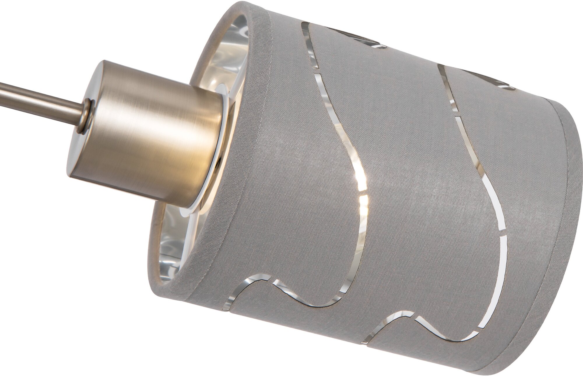 Серия стильных светильников в современном стиле. Одно из преимуществ светильников - компактность, благодаря которой их можно использовать в помещениях с невысокими и низкими потолками. Арматура сделана из металла, а абажуры - из ткани цвета "хром". Абажуры украшены узором из прорезей.