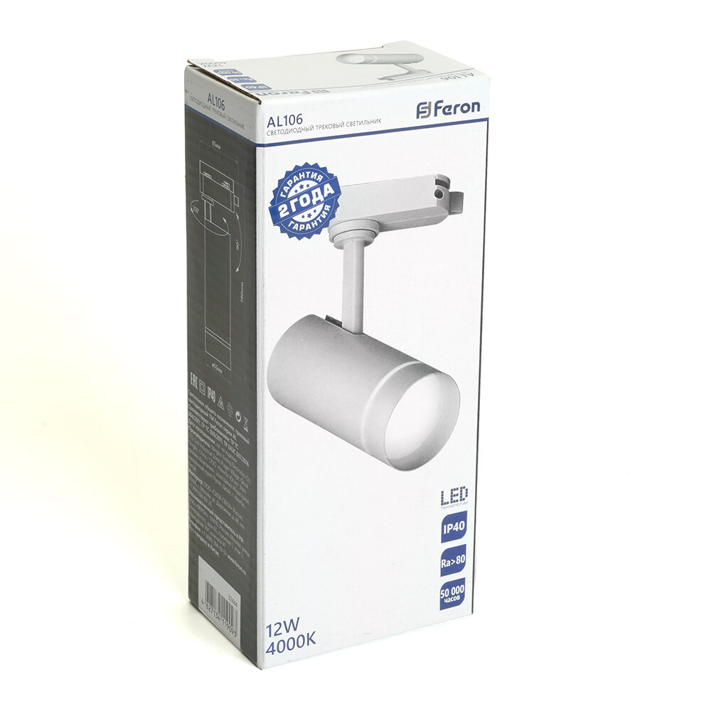 Светодиодный светильник Feron AL106 трековый однофазный на шинопровод 12W 4000K 80° черный Артикул 32445