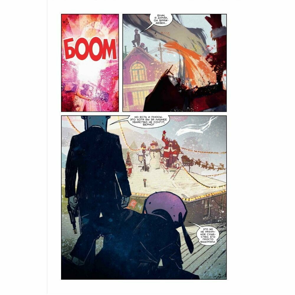 История из вселенной "Академия Амбрелла" про двух крайне интересных персонажах, к сожалению погибших в комиксе. Поэтому если вы хотите вернуться к этой страной болтливой парочке, то этот сингл для вас. Здесь есть интересная идея про Рождество, тоже нестандартная. В остальном же - здесь нет такого же буйства и безумства, кровищи, это довольно простая и добрая, праздничная история. Рисунок дерзкий, крутой и молодёжный.