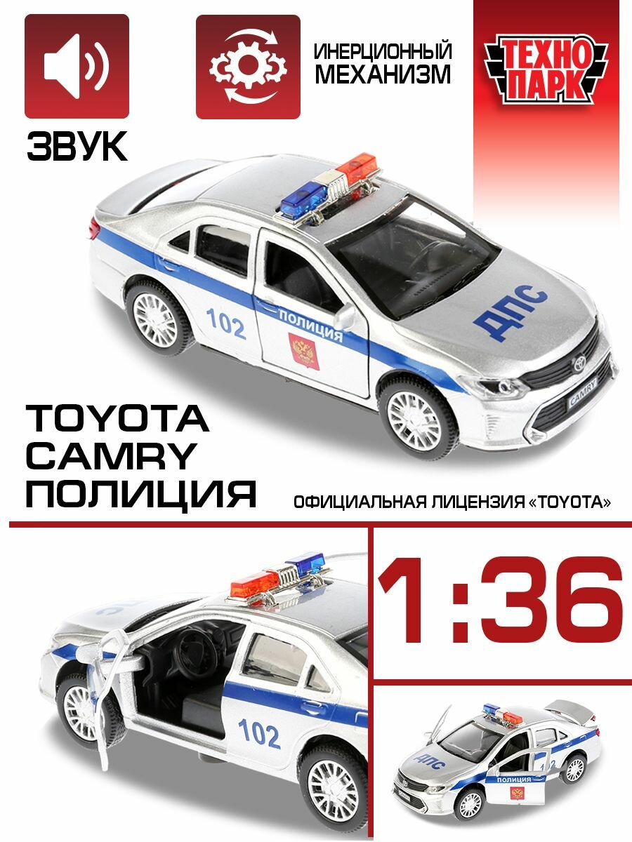 Металлическая машина Технопарк «Toyota Camry Полиция» со светом и звуком 12 см (CAMRY-P-SL)