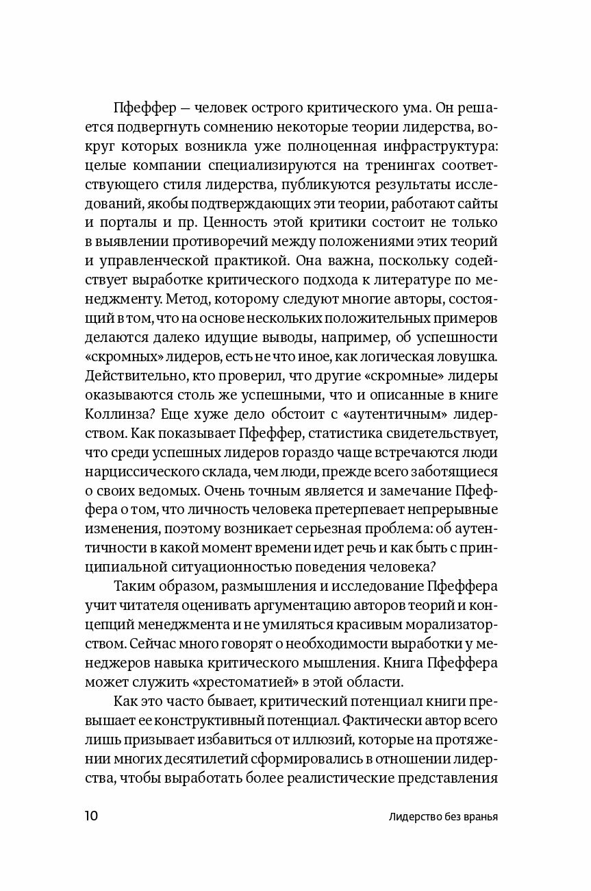 Пфеффер проливает свет на причины упадка сложившейся системы лидерства и менеджмента и объясняет, как это можно исправить. Он критически пересматривает традиционные рекомендации лидерам. Анализируя десятки реальных историй и мифов о лидерстве, он призывает избавиться от стереотипов и строить карьеры на основе научного подхода и проверенной информации.