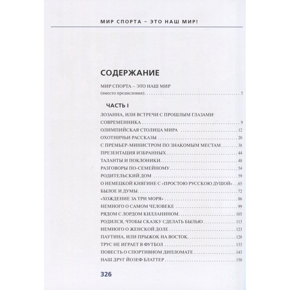 Книга воспоминаний известного специалиста международного спортивного движения Валерия Вячеславовича Воробьева посвящена, в основном, двум интереснейшим темам: олимпийскому движению и феномену руководителя известной немецкой компании «Адидас» Хорсту Дасслеру. Автор, свидетель важнейших событий в международном спорте в последние три десятка лет, рассказывает о людях, с которыми свела его судьба, о тех, кто оставил в истории спорта немеркнущий след.