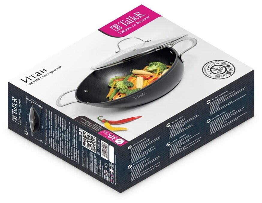 Сковорода-вок TalleR Итан TR-4199 черного цвета – новинка от английского торгового бренда. Марка дополнила ассортимент продукции воком из прочного и легкого металла с антипригарным покрытием.