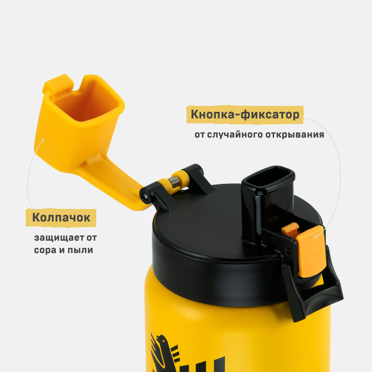 Вакуумный термос-бутылка - сититерм. Поилка с предохранителем позволяет открывать и закрывать термос одной рукой. Специальный колпачок защищает носик для питья от пыли. Ручка - карабин позволяет прикрепить термос на сумку или рюкзак. Сититерм подходит для подстаканника в автомобиле, а также помещается в велосипедном держателе для бутылок. Небольшой объем делает термос удобным в использовании даже для ребенка.