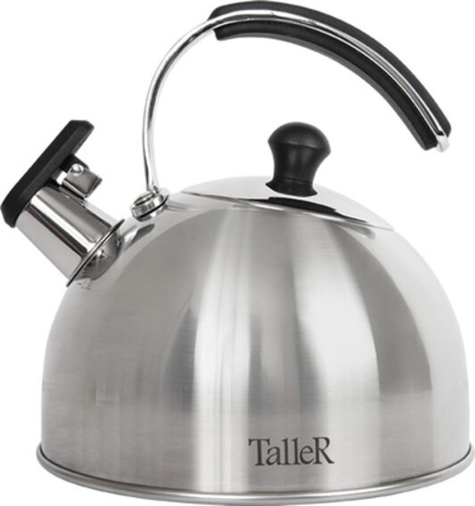 Чайник из нержавеющей стали TalleR TR-11352 «Эдвин» 2,5 л (старый артикул TR-1352) Высококачественная нержавеющая сталь марки 18/10 (AISI 304). Изготовлен методом завальцовки. Толщина стенки - 0,6 мм, толщина дна - 4,1 мм. Внешний диаметр дна - 16,8 см. Внешнее полировка - матовая (крышка имеет зеркальную полировку), внутренняя - зеркальная. Крышка выполнена из нержавеющей стали. Бакелитовая ручка крышки не нагревается. Стальная ненагревающаяся ручка чайника со вставкой из силикона. Свисток с рычажным механизмом убережет руки от ожогов. Есть отметки литража на внешней поверхности. Пригоден для мойки в посудомоечной машине без использования абразивных моющих средств. Подходит для всех типов плит, включая индукционные. Нельзя использовать в духовом шкафу.