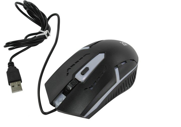 Defender - проводная мышь, оснащенная оптическим сенсором с разрешением 1200 dpi. Данная модель отлично подойдет для начинающих геймеров. Имеет отличительный геймерский дизайн и 7 вариантов подсветки. Разрешение сенсора устанавливается посредством отдельной кнопки, расположенной на спинке манипулятора. Колесо прокрутки рифленое, что обеспечивает уверенный скроллинг. Эргономичная форма позволяет удобно удерживать мышь, а симметричная форма подходит как для правшей, так и левшей.