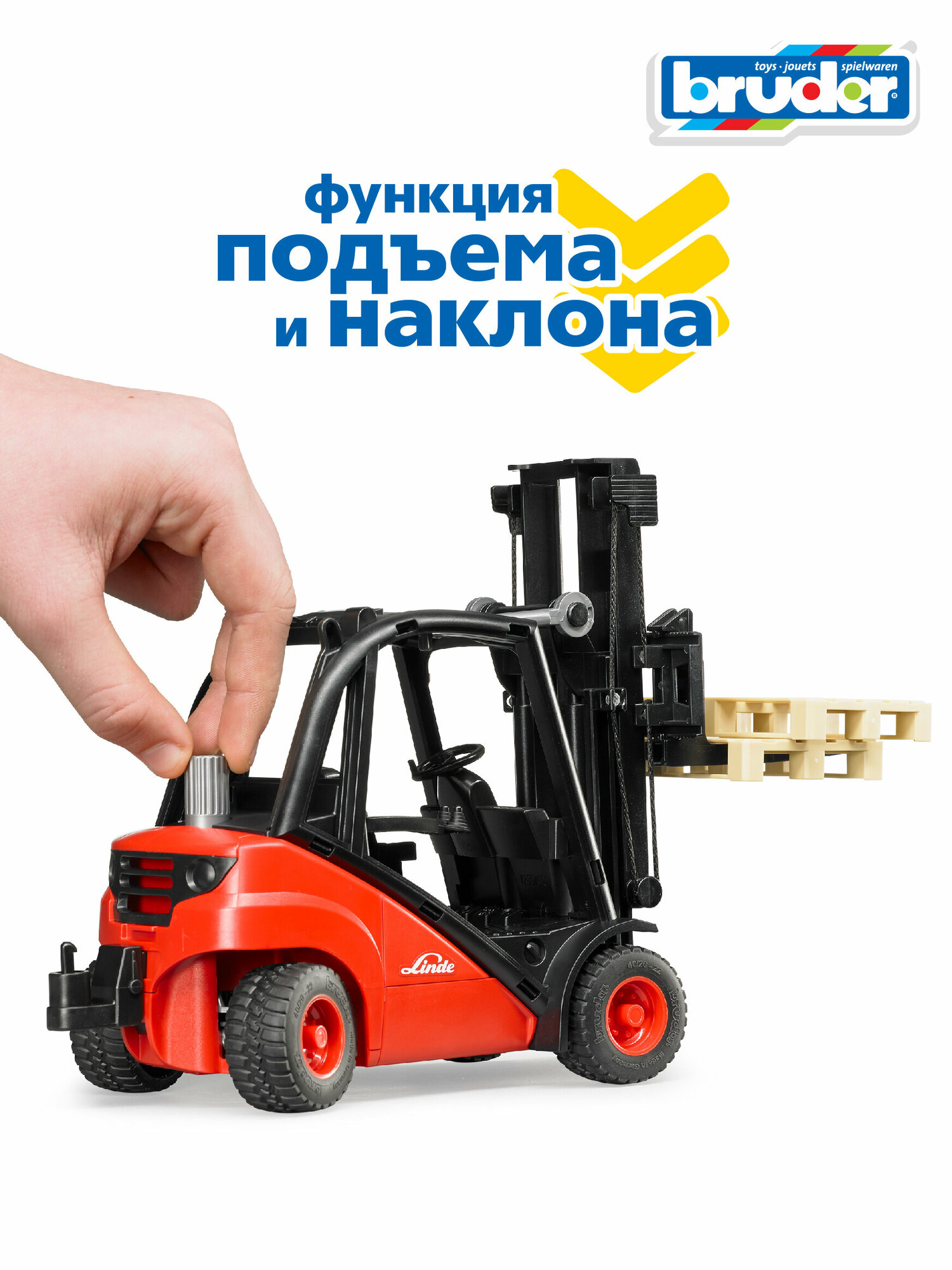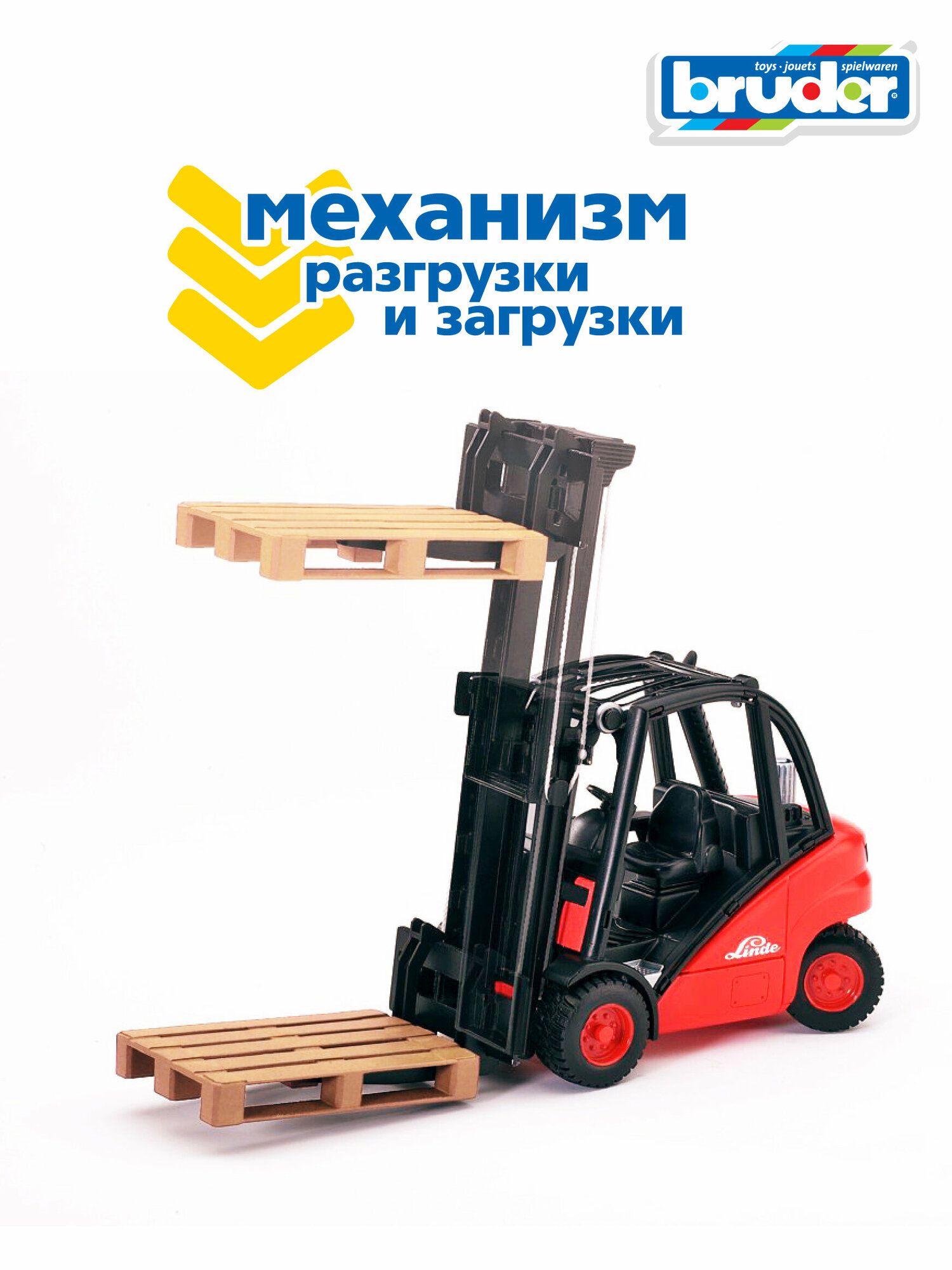 - Погрузчик Bruder вилочный Linde H30D с паллетами