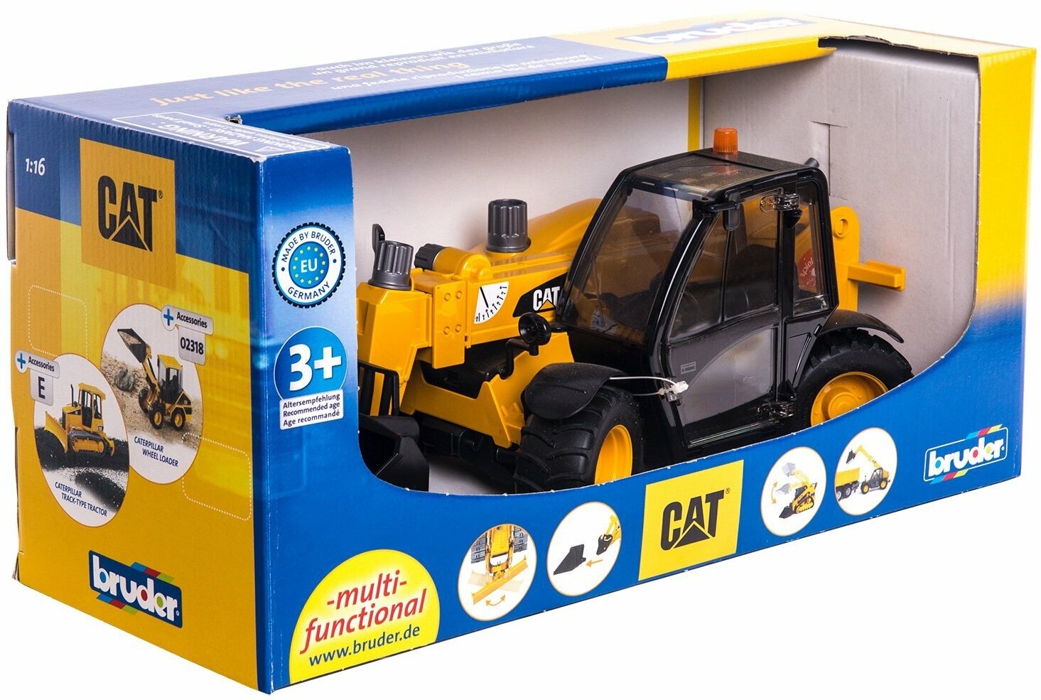 Хотим порадовать всех почитателей детских игрушечных машинок Брудер (Bruder) новой моделью дорожного погрузчика с телескопической стрелой CAT. Погрузчик, как и другие модели, неизменно выполнен в масштабе 1 к 16-ти, что дает возможность интересной и полноценной игры с полнофункциональной моделькой.