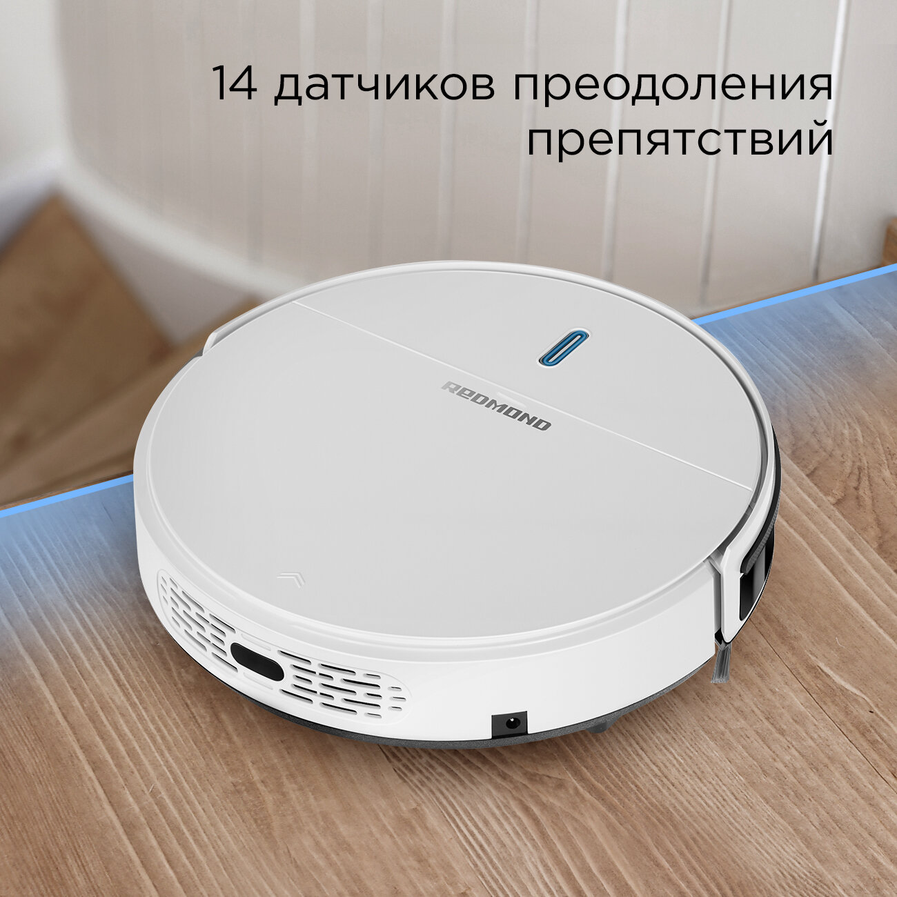 REDMOND – робот-пылесос «2 в 1» для сухой и влажной уборки напольных покрытий в доме или офисе. В отличие от моделей предыдущего поколения, оснащен съемным контейнером для воды. Благодаря тому, что насадка непрерывно смачивается водой, влажную уборку робот-пылесос проводит тщательно и качественно – пылесос удаляет загрязнения с гладких полов и не оставляет разводов.