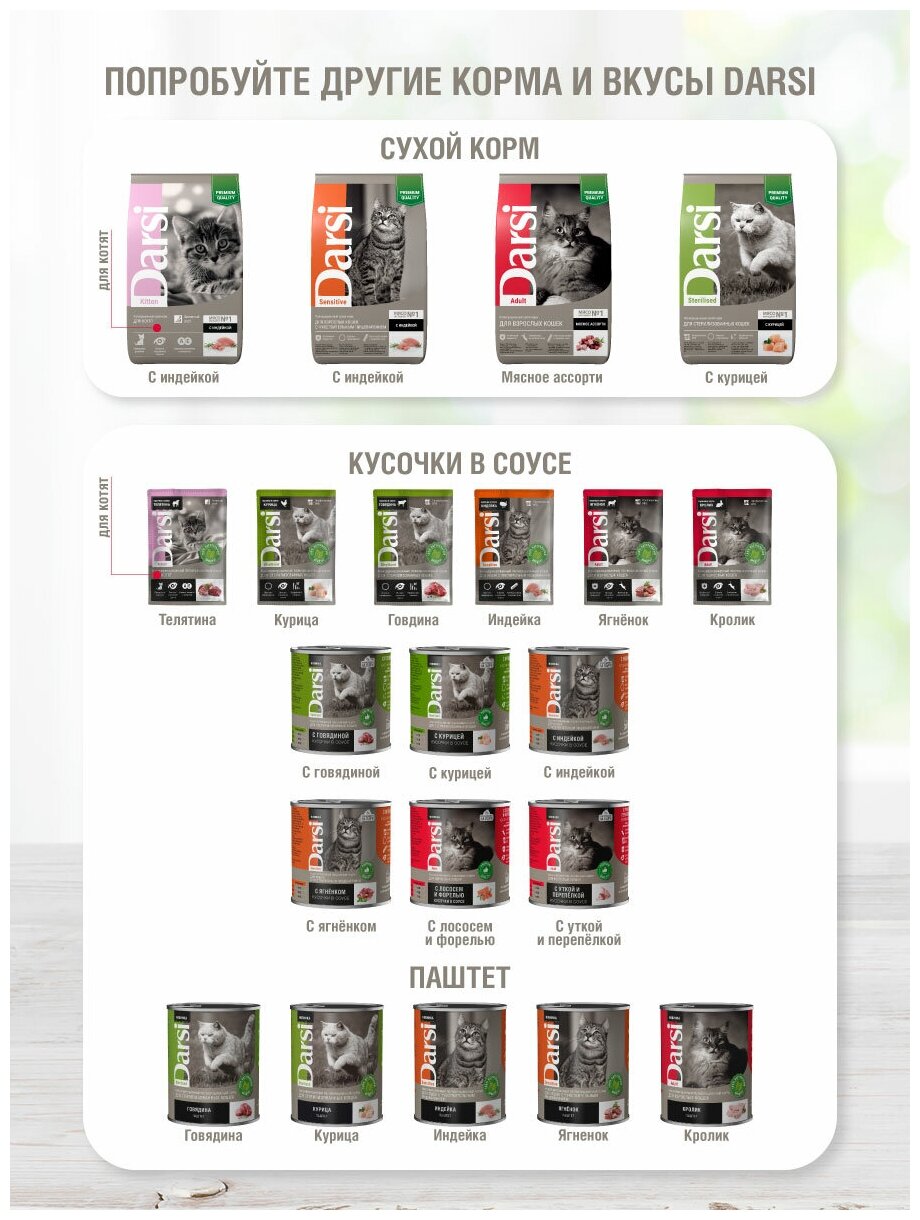 Сухие рационы под торговой маркой Darsi производятся по ГОСТ (Р 55453-2013).
