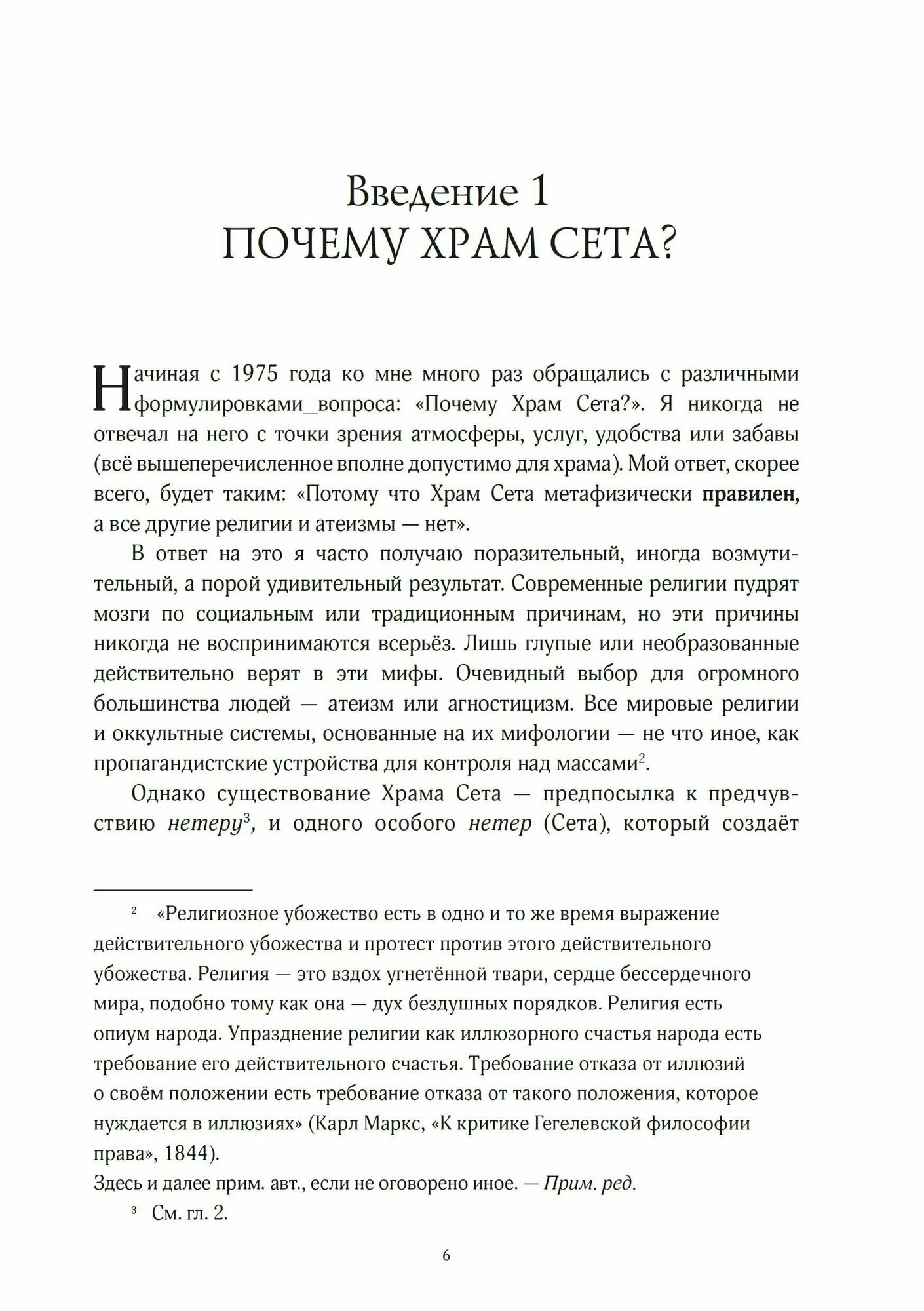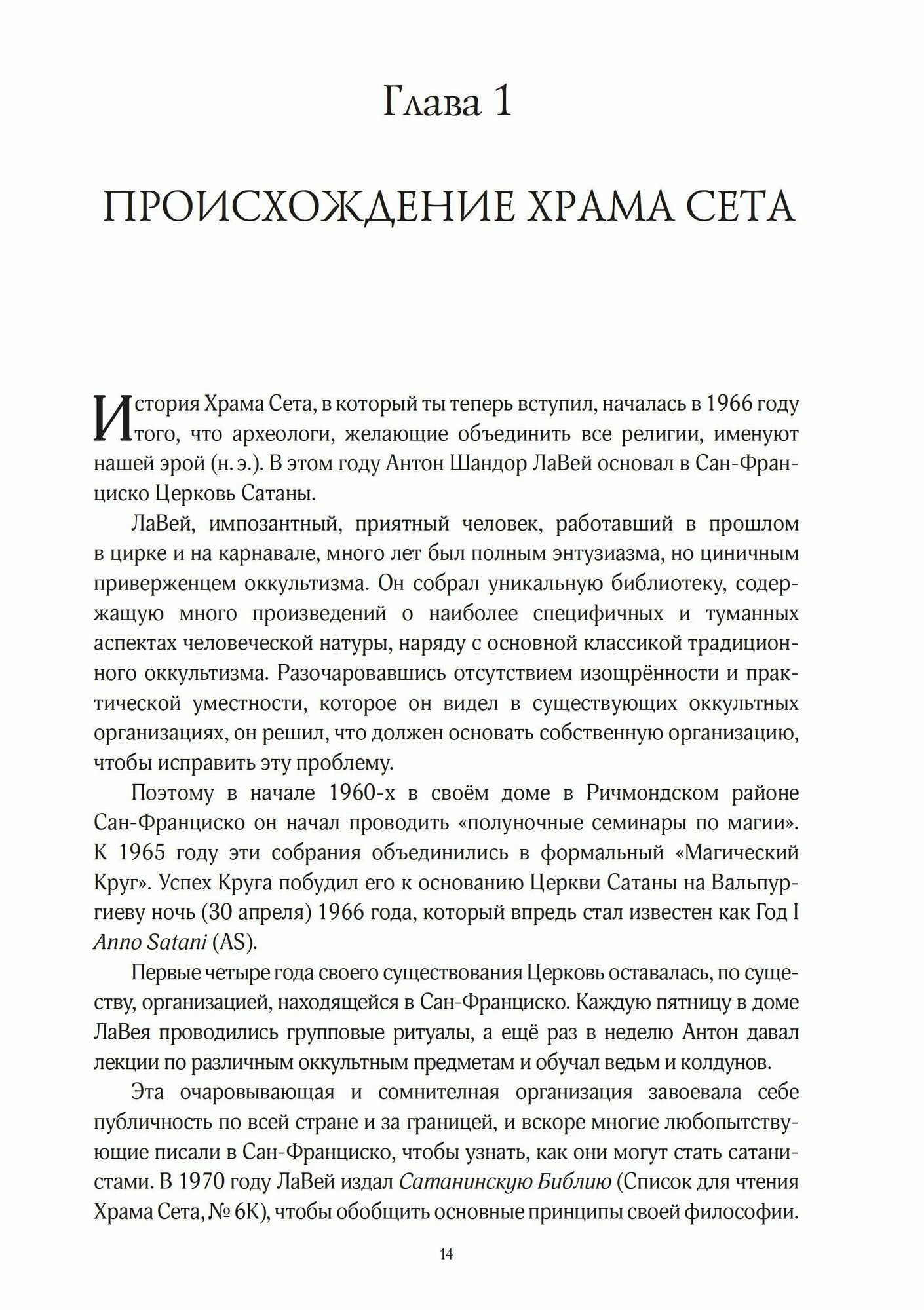Это очень необычная книга по черной магии. Мы привыкли, что в черномагической литературе найдем множество действенных ритуалов и заклинаний на все случаи жизни, один из них в данный момент точно подойдет. Майкл Аквино идет другим путем. Он предлагает читателю путь посвящения, начиная с Древнего Египта, основанный на понимании принципов, лежащих в основе черной магии, как они сформулированы в ордене Храм Сета. Именно философское осмысление природы бытия с темной стороны даст читателю ключ к овладению наукой и искусством черной магии и тогда никакие сборники заклинаний и ритуалов станут просто не нужны. Другими словами, в книге раскрывается секрет о том, как узнавать темные секреты. В этом и состоит основная ценность данной работы.