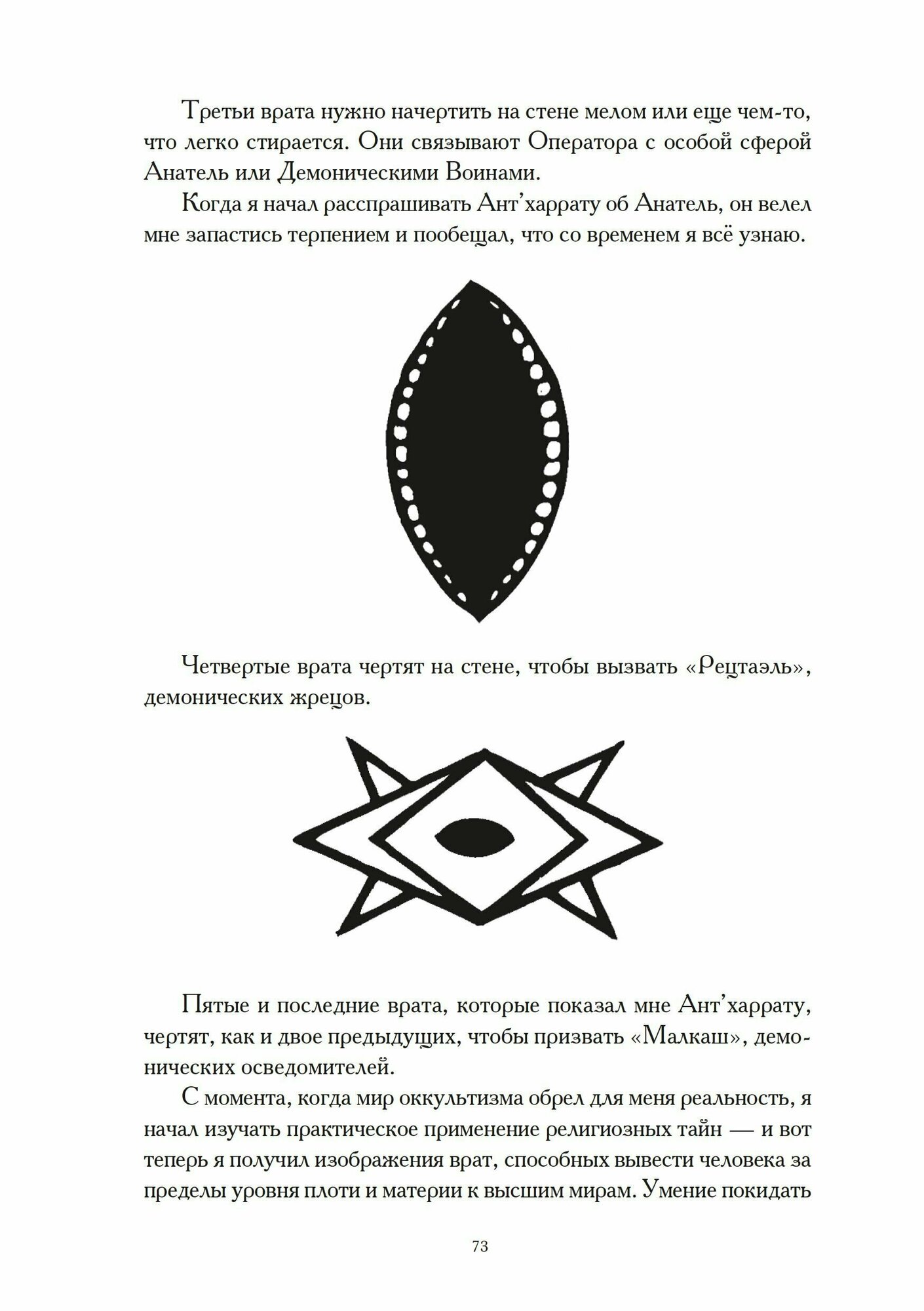 До прочтения этой книги я полагал, что вызов демонов - это очень сложное, опасное и затратное дело. Мне казалось, что осуществить вызов демона и что-то получить от него без вреда для себя - просто нереально. Я был приятно удивлён, узнав из этой книги, что связаться с демоном и получить нужную мне помощь можно даже без сложного ритуала. С помощью данной книги я нашёл ответы на мои духовные вопросы относительно вознесения, научился астральной проекции и многому другому. Я думаю, книга представляет из себя ключ, которым можно открыть дверь в мир тёмной магии. Рекомендую!