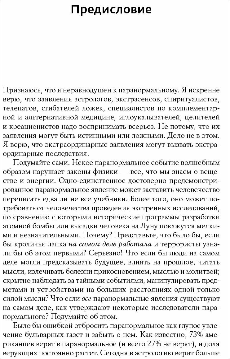 Наш мир огромен, а заблуждений в нём ещё больше. Попробовать разобраться со всем валом мифом, нам поможет книга Джонатана Смита, клинического психолога, скептика, борца с псевдонаукой и шарлатанами. Наверняка каждый из не раз в жизни заблуждался по вопросам, в которых мы мало компетентны, но старался горячо отстоять свою точку зрения и доказать правоту. Часто это было не совсем разумно и в большинстве случаев иррационально. Сколько всякой глупости, в которую верили и считали правдой, но книга является хорошей вакциной от глупости и невежества. В чём заблуждались мы и сейчас современный человек, поведает на страницах книги автор. Обязательно всем к прочтению, иначе мракобесия меньше в нашем мире не станет, а для молодёжи сделать настольной книгой. P.S. обязательно читать главу 16, подробный инструментарий работы с информацией, выявление, где правда и ложь, как вести беседу с людьми, которые заблуждаются, и есть ли люди предрасположенные к вере в паранормальное.