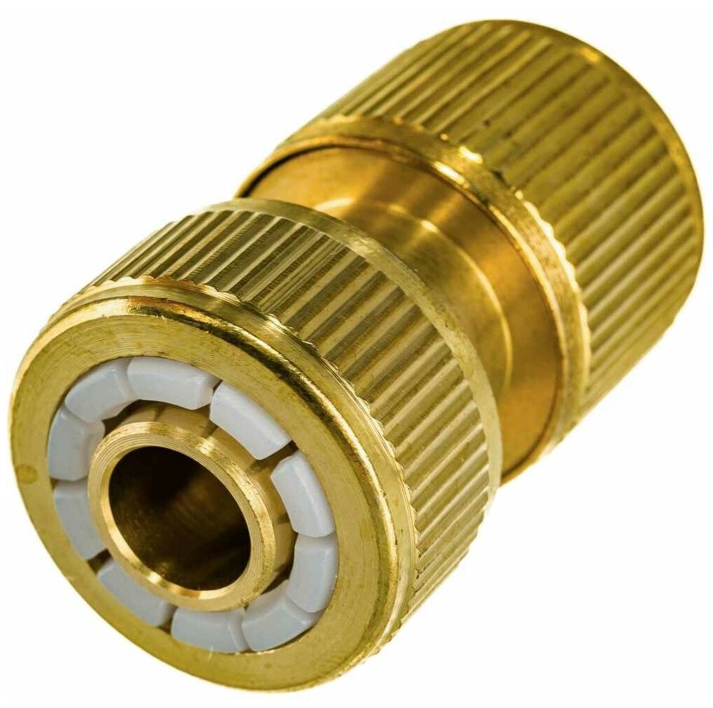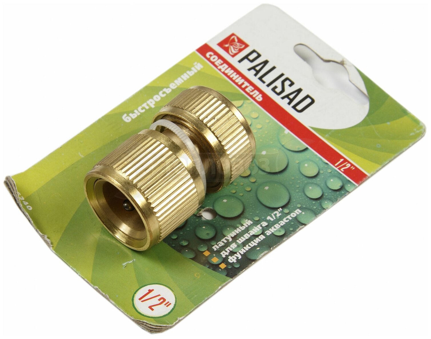 Латунный быстросъемный соединитель Palisad с клапаном автостоп рассчитан на установку шлангов диаметром 1/2 дюйма. Он используется в оросительных системах, поэтому пригодится дачникам для ухода за растениями на садово-огородном участке.