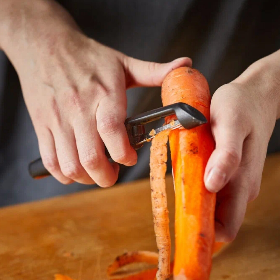Эта овощечистка станет отличным дополнением к любой кухне и прекрасно подойдет для подготовки фруктов и овощей для салатов, супов, тушеных блюд и других блюд.