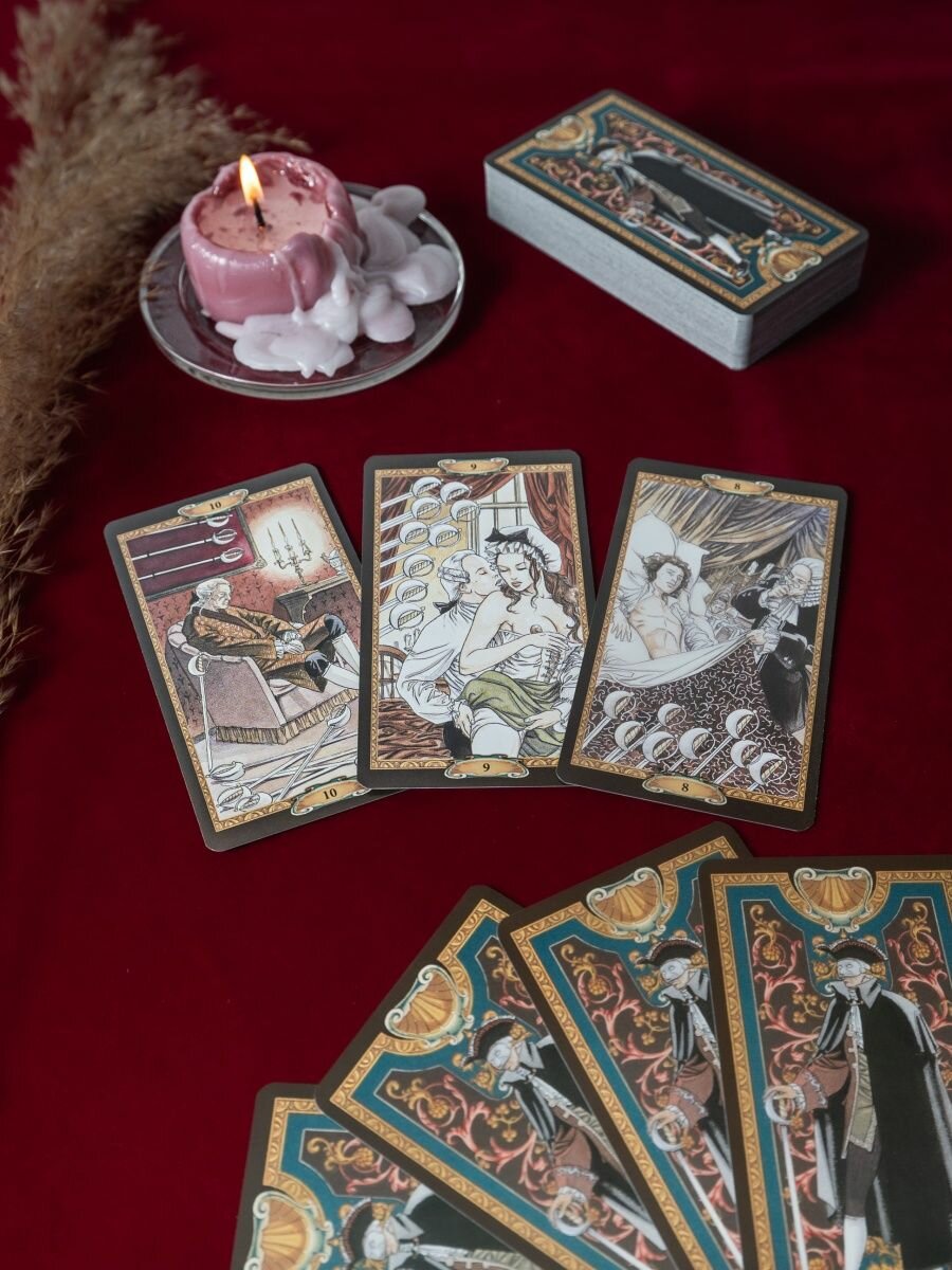 Хорошая эротическая колода для тех, кого пугает чрезмерная откровенность Манары и Декамерона. Данное издание с черной рамкой, на рубашке карт изображен Паж Мечей, рубашка односторонняя, что подразумевает работу на прямых позициях. Таро Казановы отлично подойдет для любовных и сексуальных раскладов. Энергетика колоды мужская, поэтому хорошо показывает именно то, что думает мужчина - его желания, мысли и мотивы. Так же колода хороша для раскладов на бизнес и карьеру. Очень рекомендую к этой колоде приобрести книгу Елены Ледней для лучшего понимания символизма карт. Рекомендую!