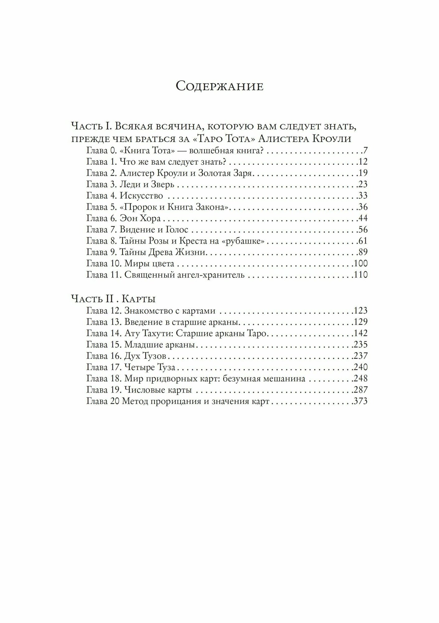 Характерная особенность этого автора, уже известного русскоязычному читателю по книгам Магика Алистера Кроули и Ключ к Ключу Соломона, состоит в умении объяснять простым и понятным языком суть многих темных оккультно-мистических вещей. Так и этой книге, одной из лучших по Таро Тота, автор на первых ста страницах вводит читателя в символическое поле учения Телемы, дает необходимую историческую информацию, в том числе каббалистическую, с различными схемами и таблицами, после чего подробно излагает саму систему Таро Кроули, отдельно рассматривая Старшие и Младшие арканы, Тузы, придворные карты и числовые карты, приводит для карт систему соответствий, значения, символическое описание, дает способы прорицания. В общем, это одно из лучших пособий по Таро Тота, и этим все сказано.