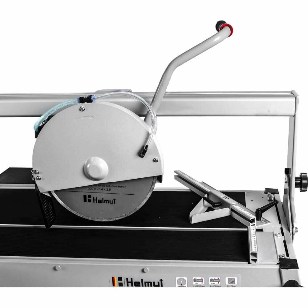Электрический плиткорезный станок с верхней направляющей Helmut , используется для выполнения небольшого объема работ по разрезанию облицовочной или тротуарной плитки. Размер рабочего стола 1060 x 468 мм. позволяет осуществлять рез длинной до 1020 мм., а верхняя направляющая дает возможность делать пропилы под углом 45° на глубину до 45 мм. Станок имеет водяное охлаждение, это убережет заготовку и оснастку от порчи и перегрева.
