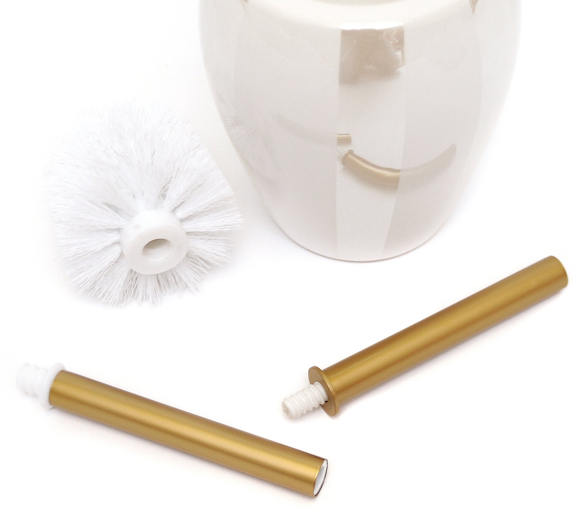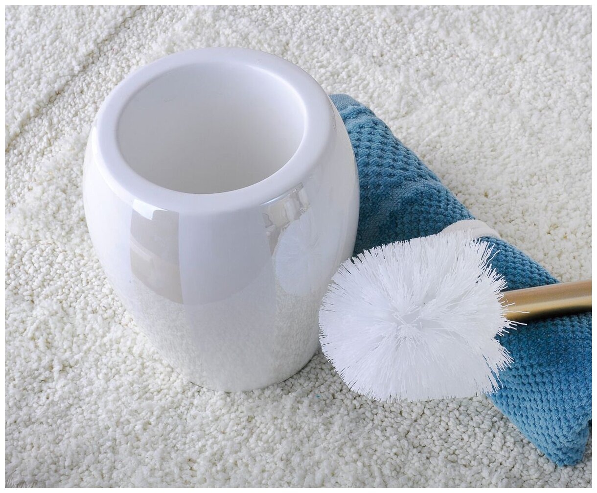 Ершик VERRAN белый, для туалета имеет специальное покрытие деколь, придающее изделию красивый перламутровый блеск. Бережный уход при помощи мягкого моющего средства и салфетки поможет сохранить эстетичный вид ершика в течение продолжительного времени. Размеры изделия высота 36 см, диаметр 13,2 см.