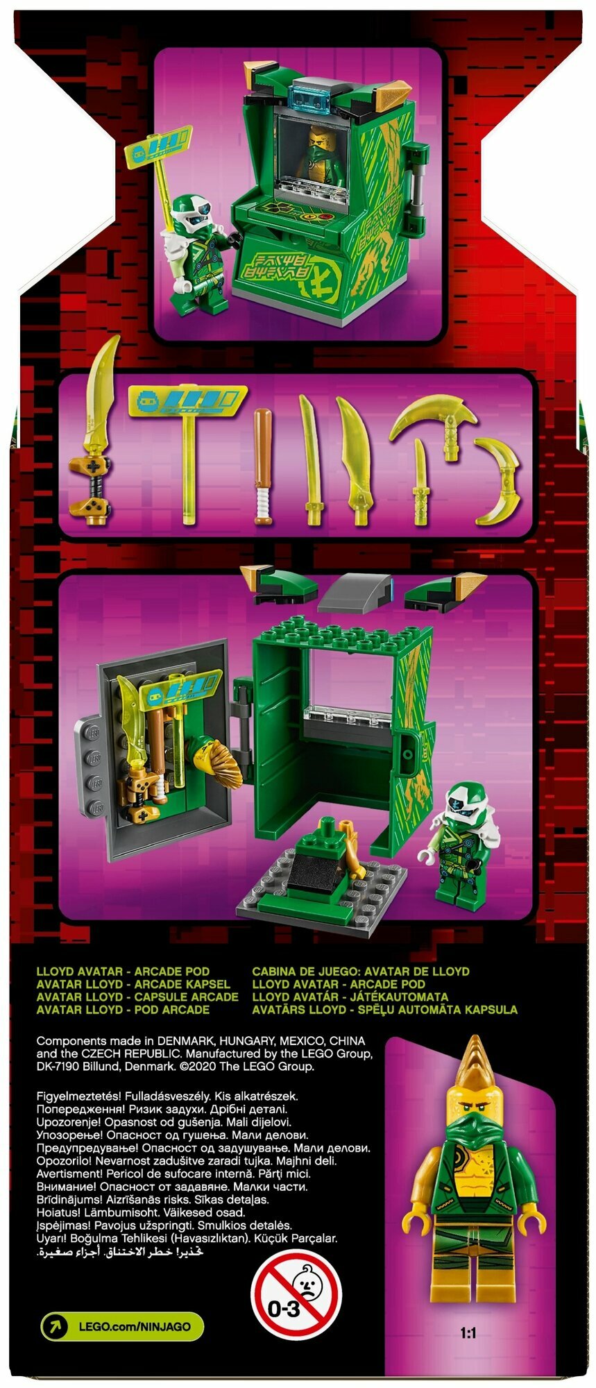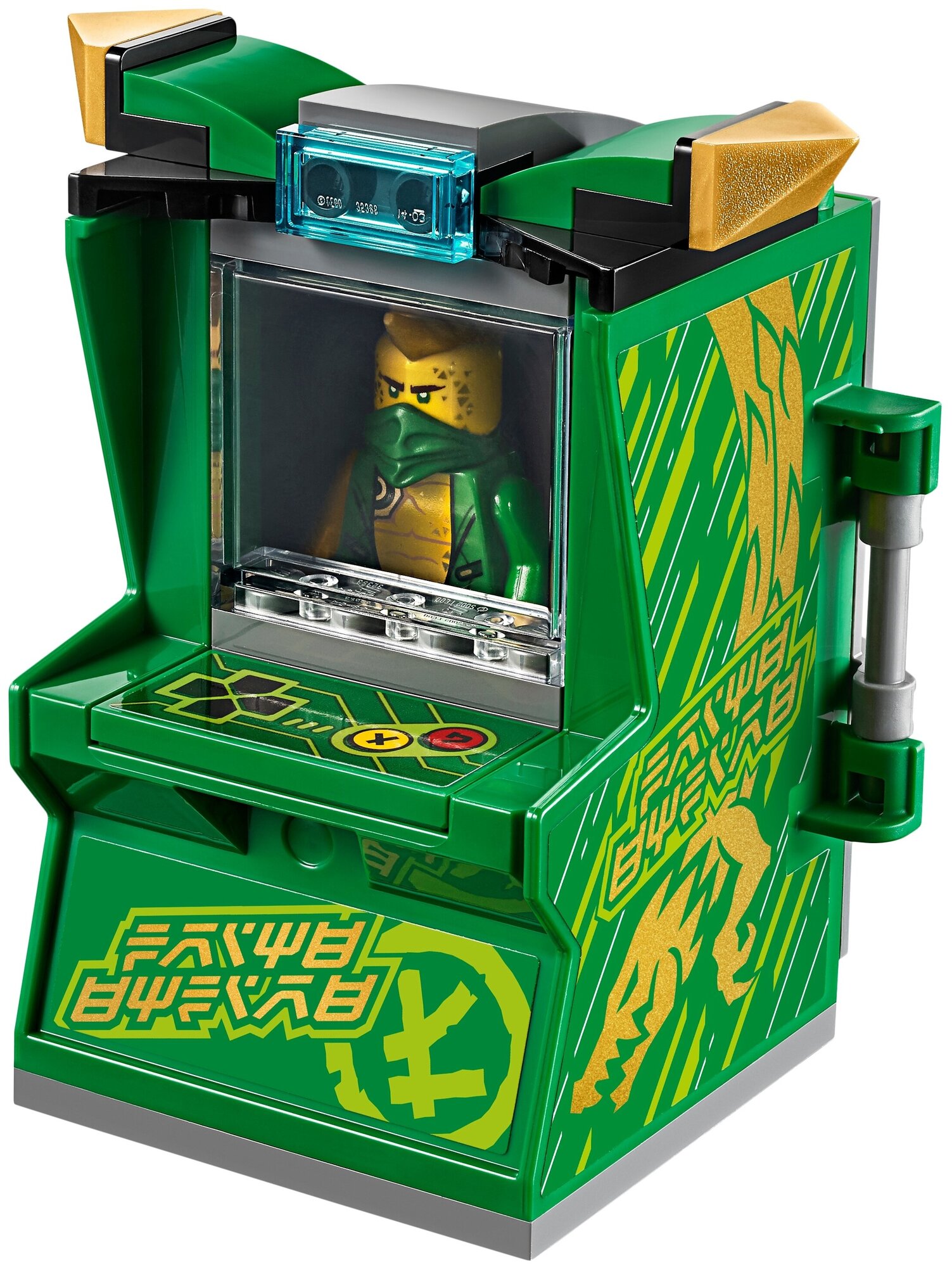 Этот удивительный аркадный автомат позволяет ниндзя транспортировать себя из NINJAGO® City в Prime Empire. Поклонники NINJAGO будут вдохновлены этой аркадной игрушкой и двумя персонажами видеоигры, Digi Lloyd и эксклюзивом для этого сета, Avatar Lloyd с его битой для ролевых игр и воссоздания захватывающих историй. Когда дети попадают в Prime Empire, они могут выбрать персонажа, которым они хотят быть, с их собственным аватаром ниндзя. Это дает им прекрасную возможность проявить себя и проявить творческий подход с помощью наклеек и аксессуаров. Задняя часть аркадной игрушки может быть открыта для хранения фигурок ниндзя, их оружия и аксессуаров.
