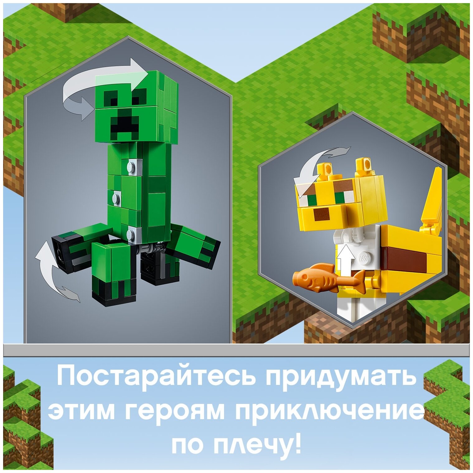 - Простые в сборке большие фигурки Крипера и Оцелота добавляют в игру Minecraft™ совершенно новое физическое измерение. Подвижные конечности фигурок предоставляют максимум возможностей для самостоятельных игр и создания крутых боевых поз.