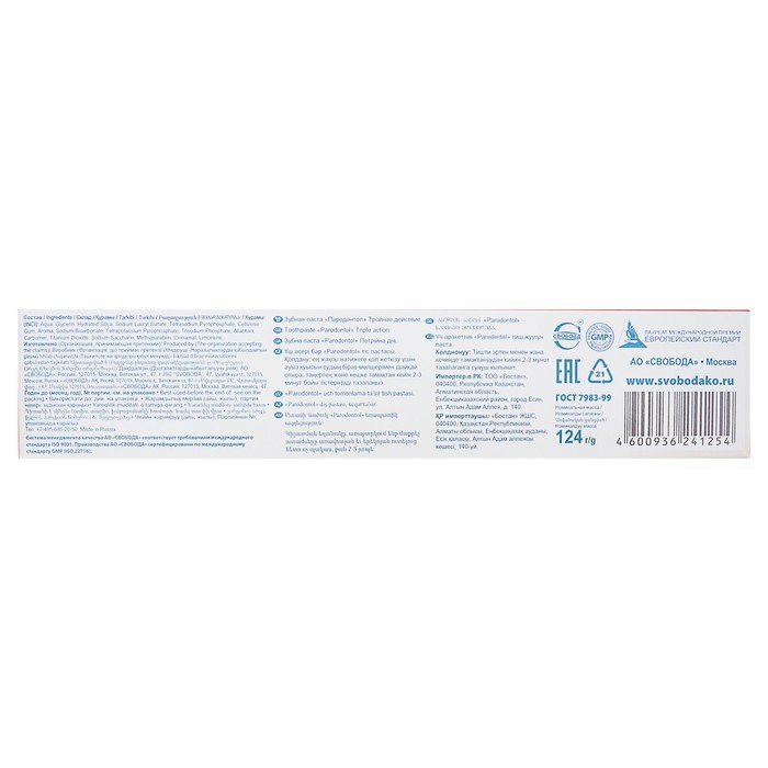 | Состав набора | зубная паста "Пародонтол тройное действие", 63 г |