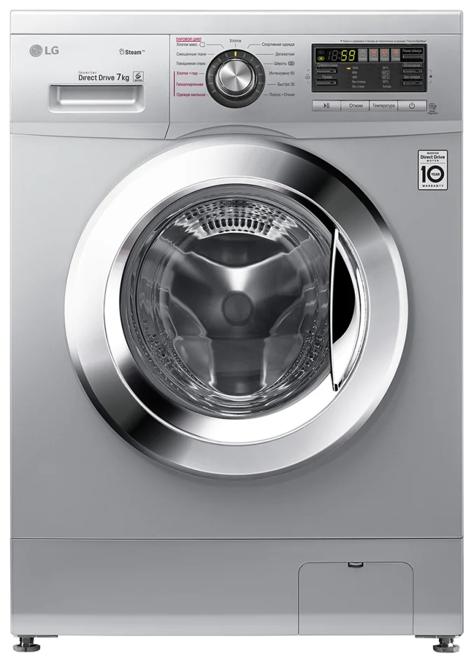 Нужна была в сером цвете машинка. Остановились на LG. Понравились функции которые там присутствуют, одна из них очистка барабана. По рекомендации после 30 циклов стирки нужно проделывать эту процедуру. Машинка полностью очищает себя от мусора и остатков порошка. Очень тихая в работе, на двигатель гарантия 10 лет. Барабан вместителен. Качество стирки идеальная !