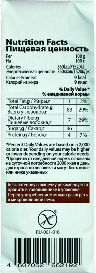 | Состав | мука рисовая, крахмал тапиоковый, сахар, какао-порошок, крахмал кукурузный, мука амарантовая, мука льняная, разрыхлитель - гидрокарбонат натрия, регулятор кислотности - лимонная кислота. |