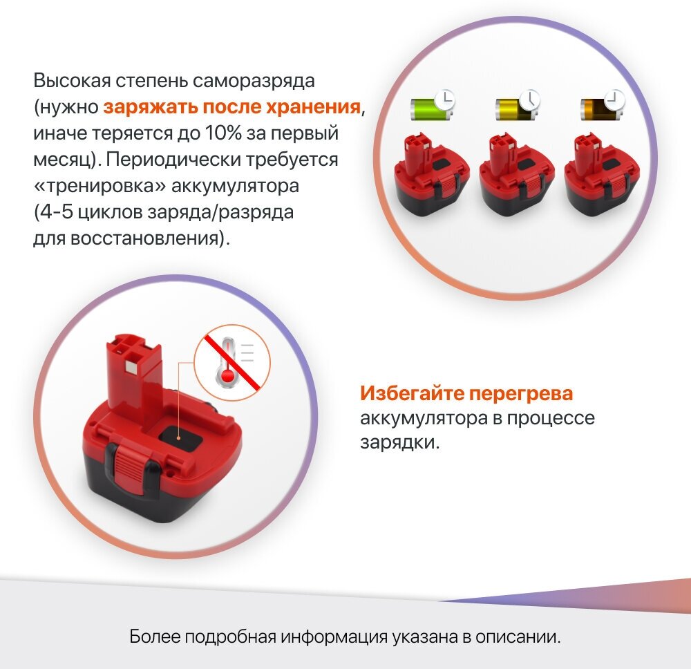 - Малый заряд аккумулятора по сравнению с NiMh батареями 2,6 Ah