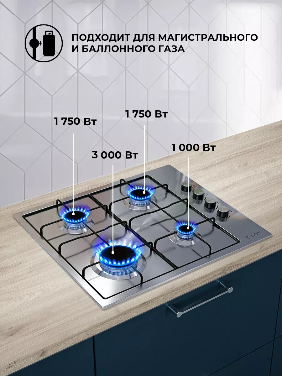 Газовая варочная поверхность LEX GVS 644 IX с четырьмя конфорками. Панель этой модели функционирует на механическом управлении. Панель снабжена удобными поворотными переключателями, которые отлично регулируют величину подачи газа.