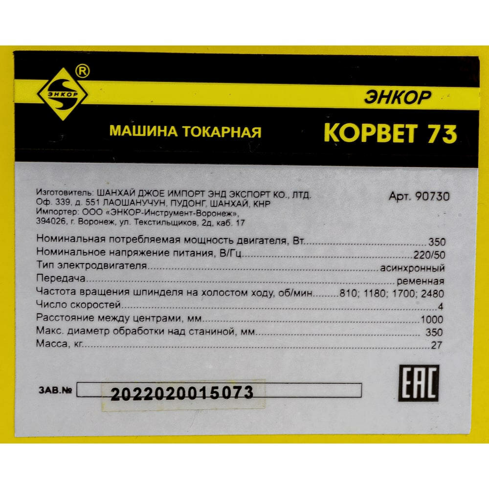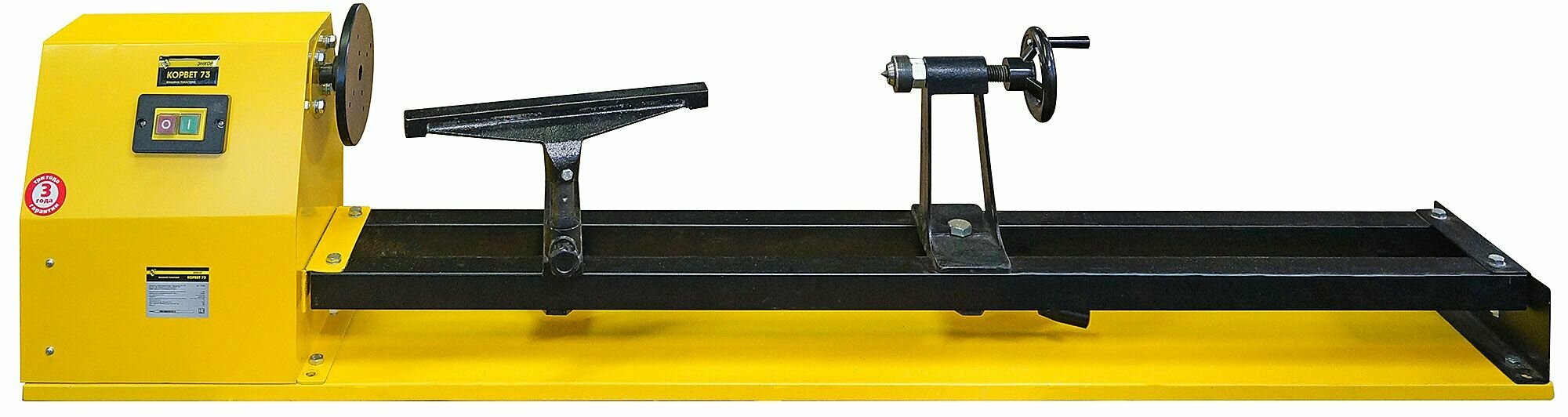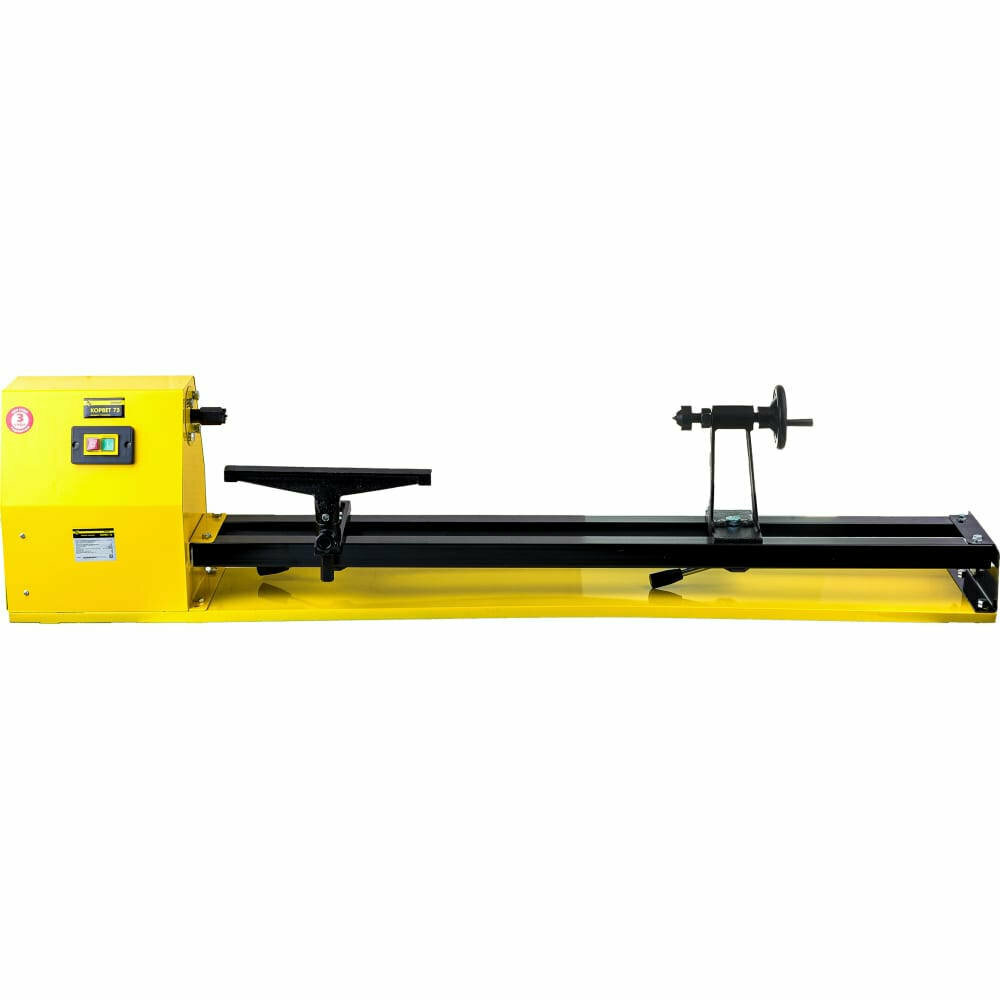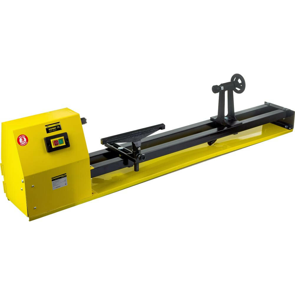 Токарный станок «Корвет 73» отличается легким весом. Станина станка выполнена из уголка и листовой стали, что существенно снижает вес станка и его стоимость. Токарный станок с межцентровым расстоянием 1000 мм становится более доступным для частного потребителя. Станок имеет 4 скорости вращения шпинделя. Скорости меняются перестановкой ремня на ступенчатых шкивах. В конструкции станка предусмотрены отверстия для крепления станка к верстаку.