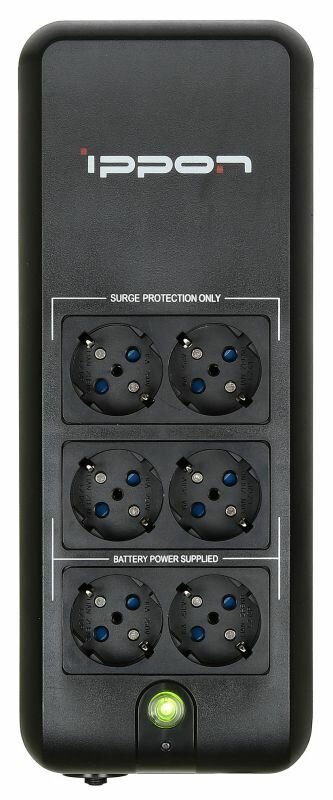 Незаменимый прибор для постоянного и безопасного функционирования электротехники – источник бесперебойного питания IPPON Back Verso800. Компактные размеры, удобное управление, маленький вес и легкое подключение техники делают устройство необходимым в домашних условиях и в небольших офисных помещениях. Данная модель способна выравнивать напряжение в пределах 170-260 В, что дает возможность избежать различного рода поломок электроприборов. Специальная система безопасности предотвращает повреждения техники в результате замыканий, ударов молнии, перегрузки и колебаний сети. Исходящая мощность источника бесперебойного питания IPPON Back Verso 800 равна 480 Вт, что дает возможность поддерживать несколько подключений приборов одновременно. 4 розетки с поддержкой питания вне сети дают время на сохранение необходимой информации и отключения техники.