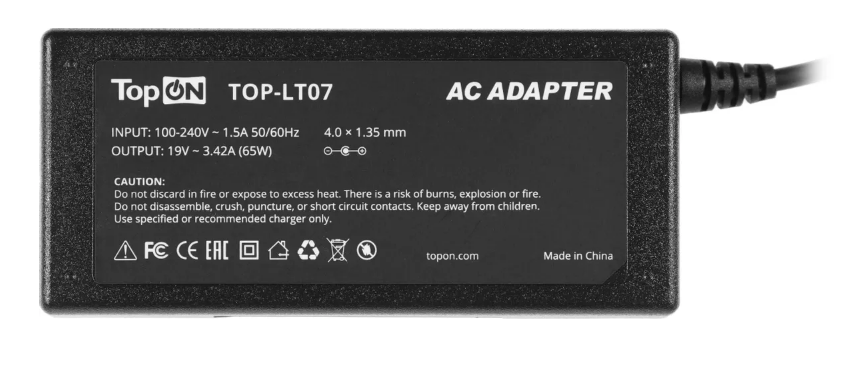 Блок питания TopON TOP-LT07 — превосходная замена оригинальному зарядному устройству, имеет длительный срок службы, а так же оригинальную систему защиты от перегрева, короткого замыкания и скачков напряжения. Все зарядные устройства TopON произведены из современных нетоксичных материалов и созданы на основе элементной базы высочайшего качества. Блоки питания TopON TOP-LT07 имеют наилучшие характеристики для эффективной и надежной работы вашего устройства - стабильное напряжение и оптимальную силу тока.