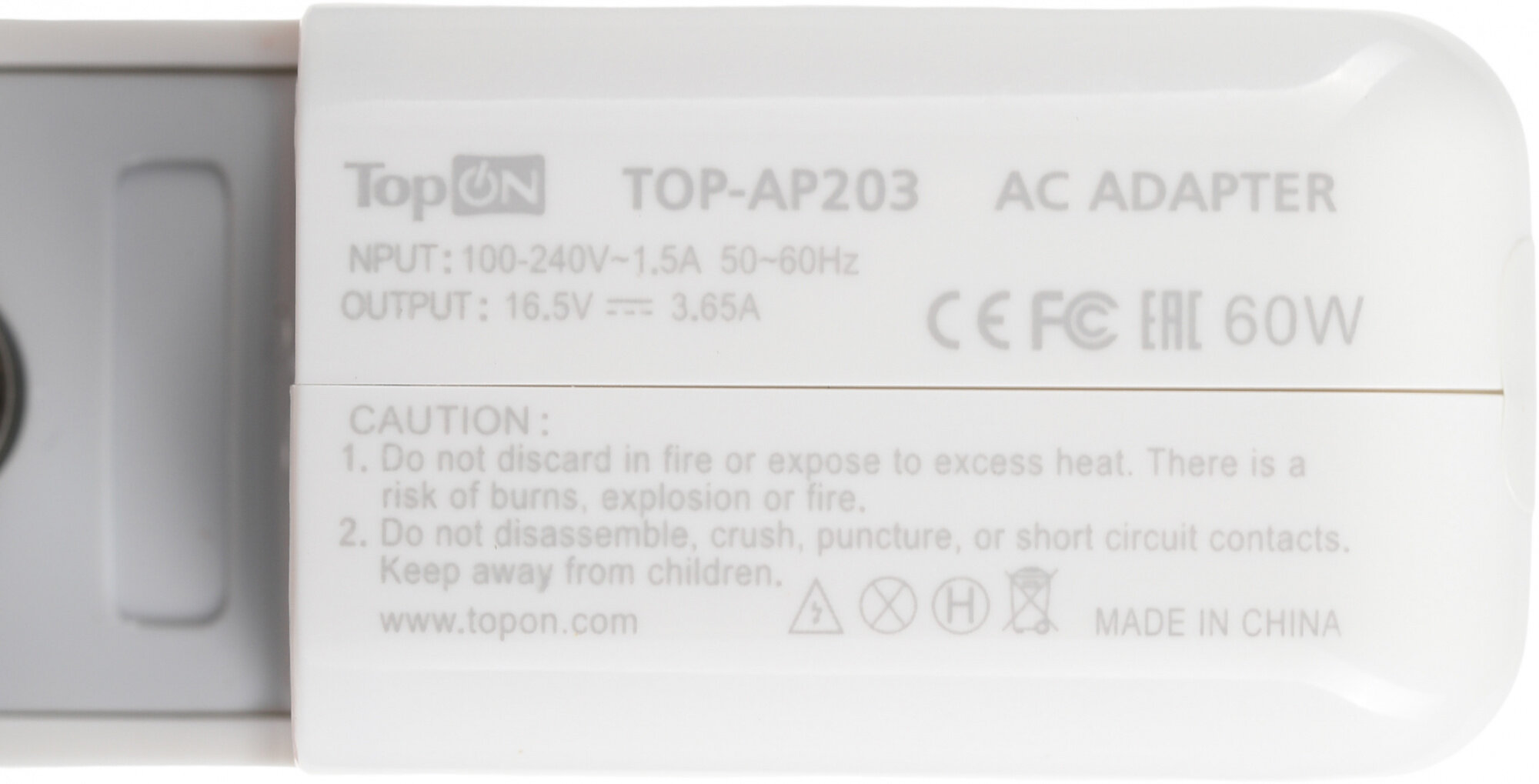 Зарядное устройство TopON TOP-AP203 16.5V -> 3.65A для MacBook Pro 13" 60W с коннектором MagSafe 2 PN: MD565Z/A TOP-AP203