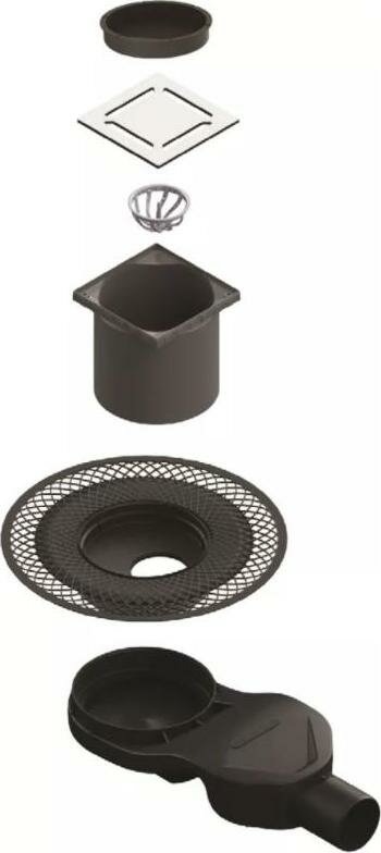Душевой трап Berges Wasserhaus Platz Norma 150x150 090159 с решеткой. Превосходно сочетается с любым интерьером ванной комнаты благодаря компактным размерам и функциональности.