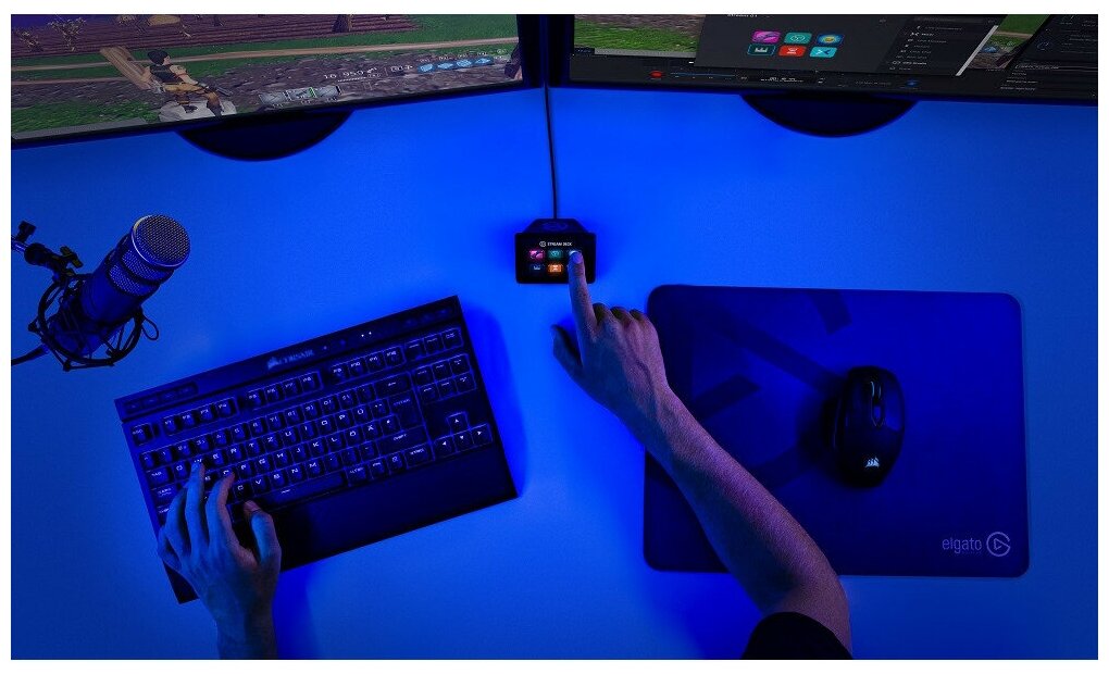 Elgato Stream Deck представляет собой компактную панель для стриминга, которая станет отличным решением для активных создателей видеоконтента. Устройство оснащено 6 клавишами, на каждой из которых расположен цветной LCD-экран. Каждой кнопке может быть присвоено выполнение определенного действия (макроса), будь то переключение между сценами, запуск мультимедиа, управление чатом и т. д. Также каждая клавиша может открывать папку еще с пятью кнопками для запрограммированных операций, при помощи которых можно значительно упростить проведение стримов.
