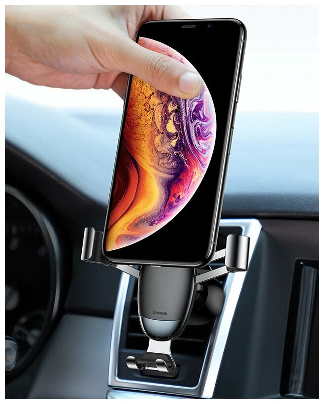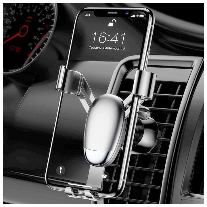 Baseus – автомобильный держатель, который предназначен для установки и использования смартфона в машине. Держатель Baseus Mini gravity SUYL-G01 выполнен из поликарбоната и алюминия, компактный и стильный, крепиться в дефлектор. Места соприкосновения со смартфоном имеют силиконовые накладки. Держатель вращается на 360 градусов – это позволит выбрать удобное для Вас положение смартфона. Телефон будет надежно закреплен в держателе и не выскользнет даже на самой ухабистой дороге.