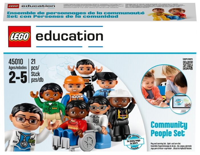 ОписаниеВ наборе фигурки людей разного пола, возраста и национальности, одетые в одежду или униформу определенной профессии. Это позволяет использовать их для множества ролевых игр. Также фигурки можно сочетать с другими наборами DUPLO.
