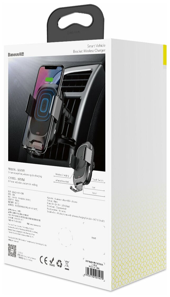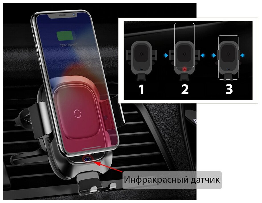 - Baseus BSWC-C02 (WXZN-01) - умный автомобильный держатель с функцией беспроводной зарядки Qi