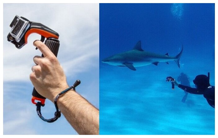 Крепление пистолета позволяет надежно закрепить вашу камеру GoPro. Конструкция ручки очень удобна, что положительно отражается на четкости снимков, сделанных одной рукой. Крепление легко и просто устанавливается и также легко снимается. Для удобства монтажа в комплекте идет специальный ключ для винта быстрого закрепления. Устройство специально сконструировано для использования с ручкой-поплавком.