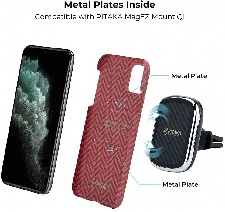 Созданный известной торговой маркой PITAKA, чехол MagEZ Case станет просто находкой для всех владельцев смартфонов. Это не просто аксессуар, а многофункциональное изделие, имеющее продуманный до мелочей дизайн. С таким чехлом использование устройств станет значительно комфортнее и безопаснее. Изделие оснащено встроенной металлической пластиной, благодаря чему телефон с легкостью фиксируется на магнитном держателе для авто той же торговой марки. Для создания чехла был использован 100% арамид, который является основой для производства бронежилетов. Этот материал превышает прочность стали в 5 раз, но при этом имеет ту же массу. Чехол является ультралегким (его вес составляет меньше 14 г) и ультратонким (имеет профиль 0.65 мм). Изделие имеет высокие показатели устойчивости к появлению царапин и других дефектов.