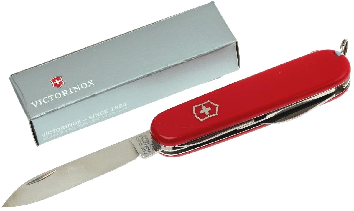 | Функции | нож большой, ножницы, булавка, мини-отвертка, консервный нож, отвертка шлицевая малая, открывалка для бутылок, многофункциональный крючок, пилка для ногтей, инструмент для снятия изоляции и зачистки проводов, ручка шариковая, штопор, кольцо для ключей, пинцет, зубочистка |